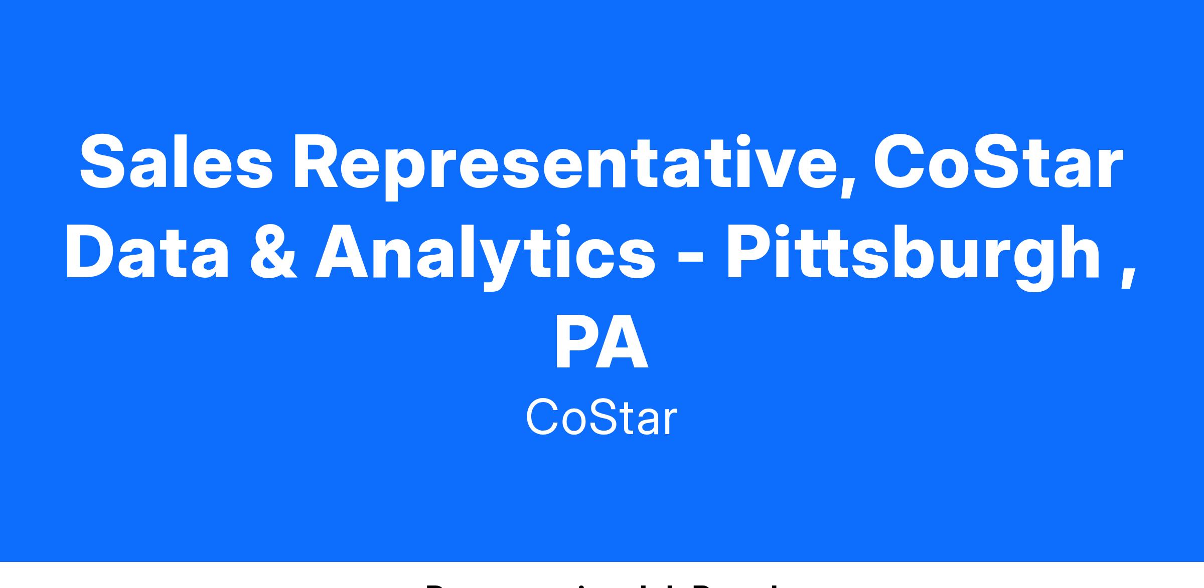 Sales Representative, CoStar Data & Analytics - Pittsburgh , PA