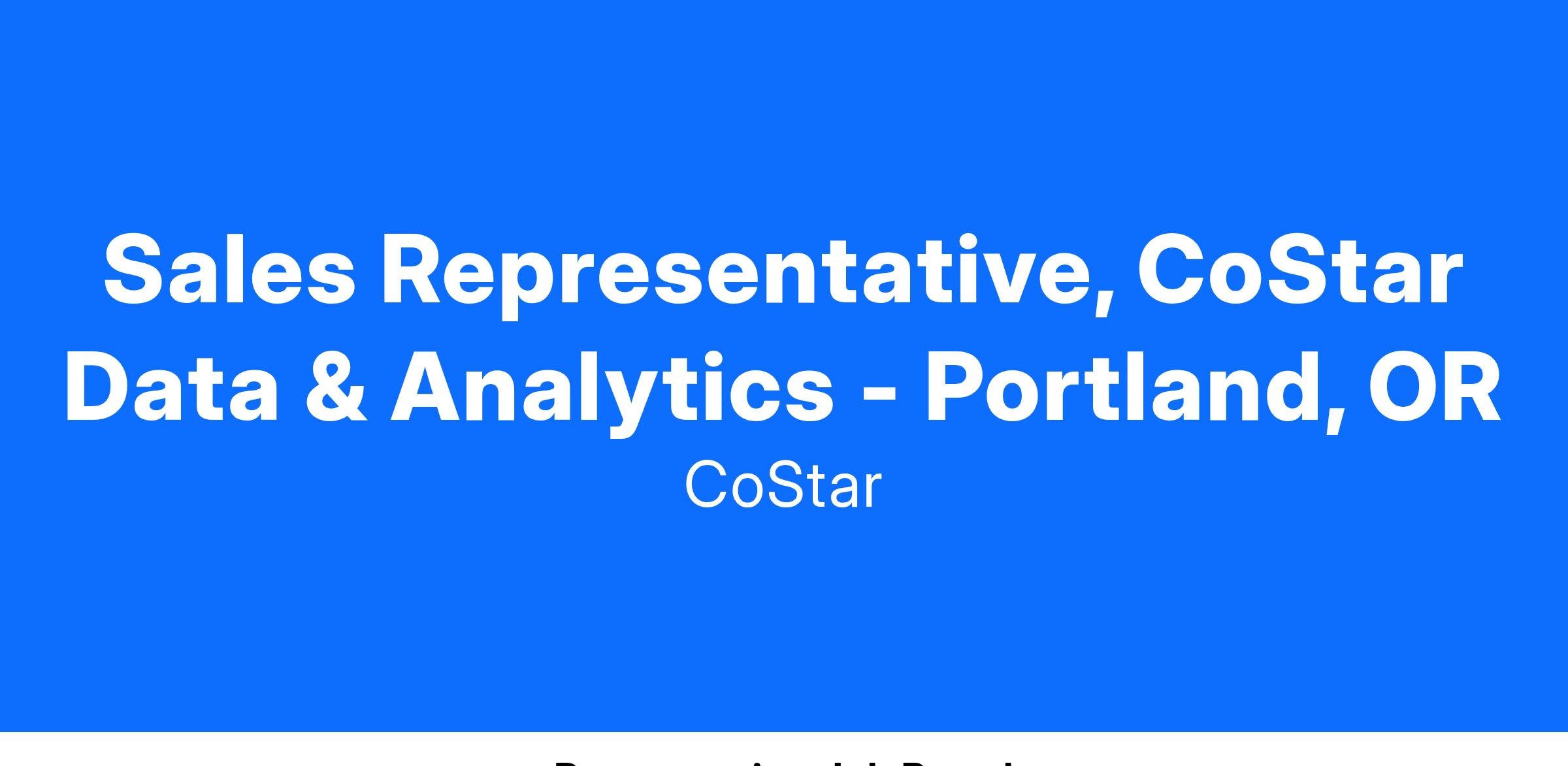 Sales Representative, CoStar Data & Analytics - Portland, OR