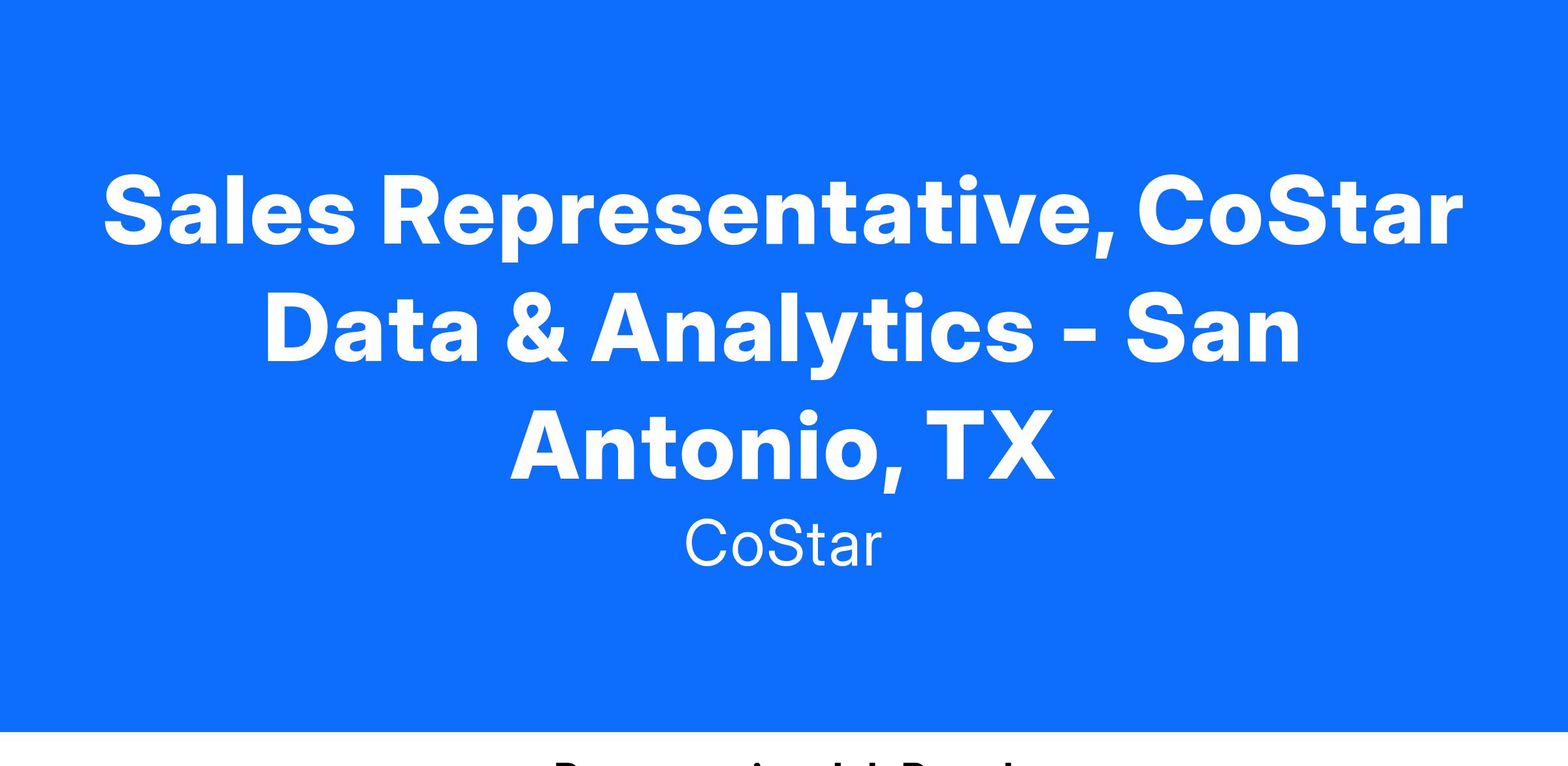 Sales Representative, CoStar Data & Analytics - San Antonio, TX