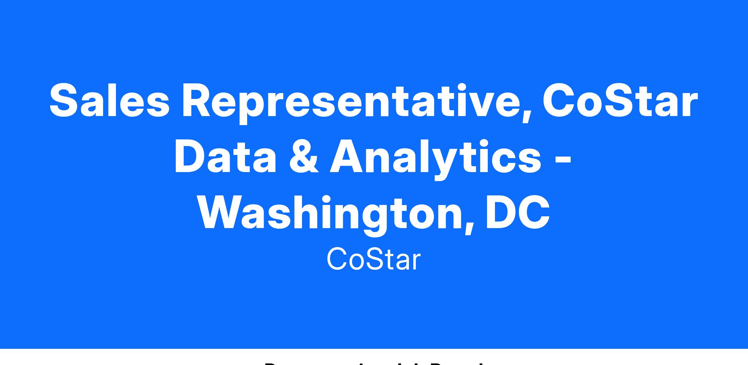 Sales Representative, CoStar Data & Analytics - Washington, DC