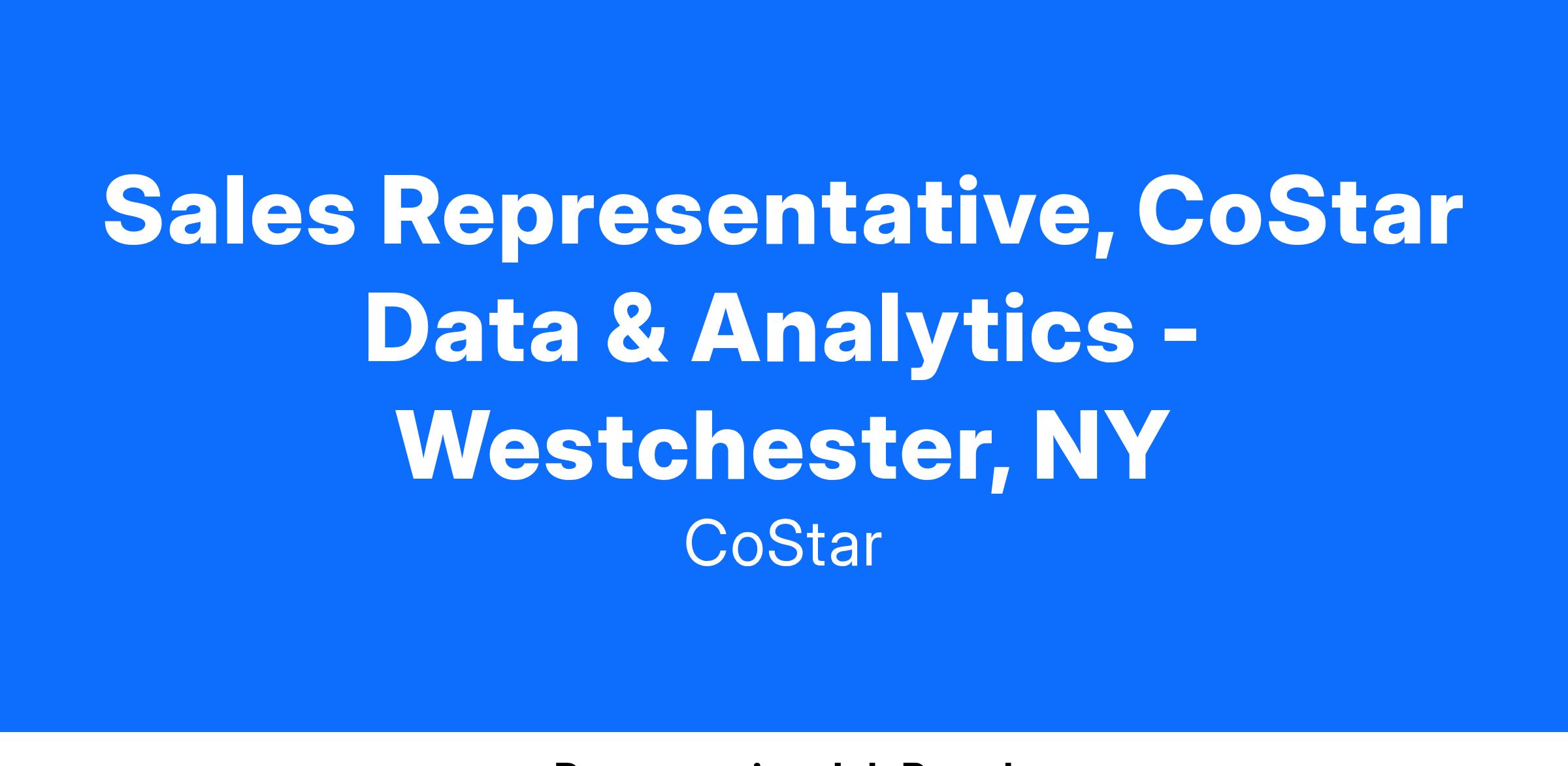Sales Representative, CoStar Data & Analytics - Westchester, NY