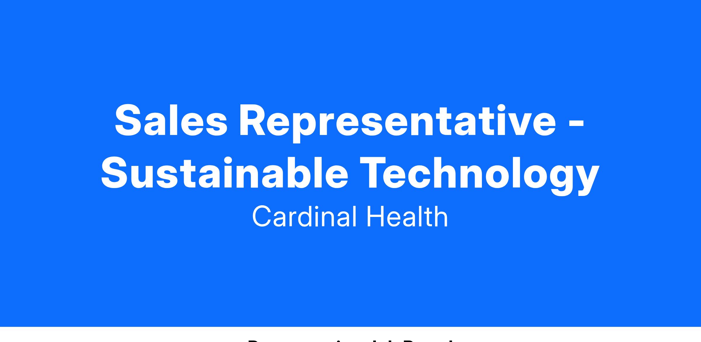 The Sales Representative - Sustainable Technology is responsible for providing technical and professional expertise during the sales process, which may directly influence the following: the crafting of the sales proposal, the operational requirements or risk, the customer's willingness to buy Cardinal Health's solution (Why CardinalHealth?), the timing (Why Now?), or the customer's satisfaction, and contract negotiations.