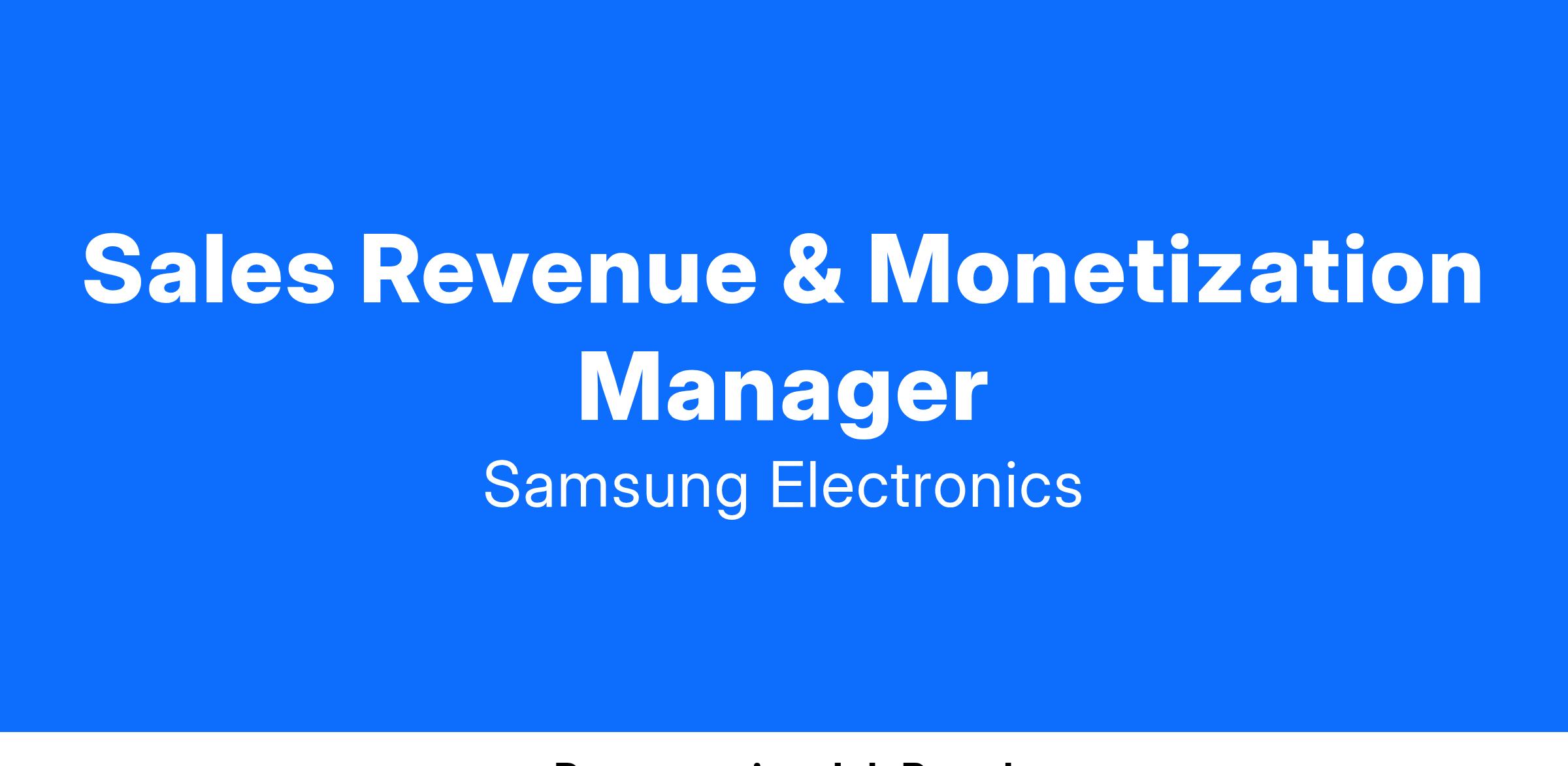- Identify new revenue opportunities through partnership with sales team and ancillary Product teams within Samsung
