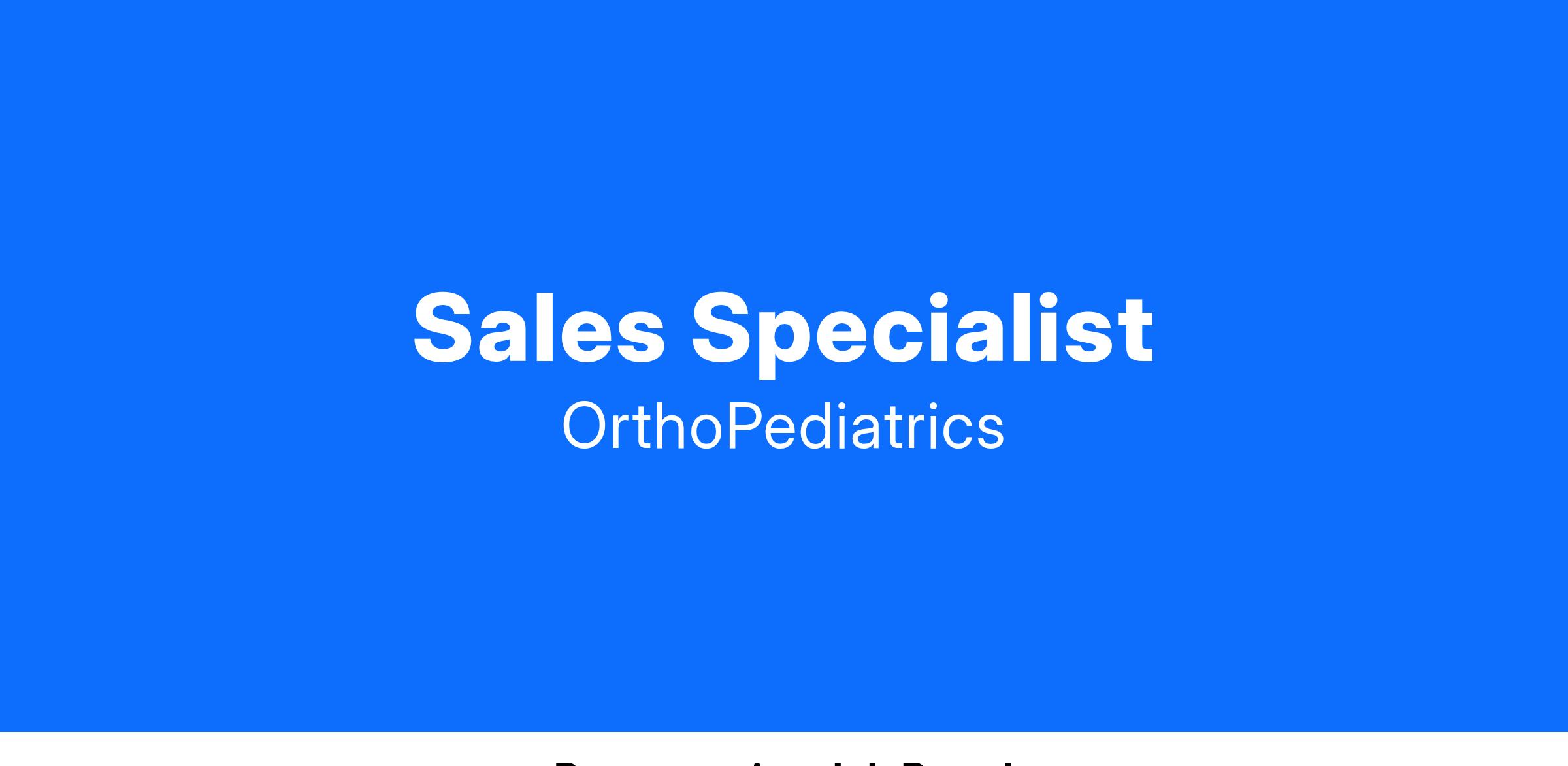 - Demonstrates technical selling skills and product knowledge in all areas listed above that allows Sales Representative to give effective presentation of OrthoPediatrics products and services.