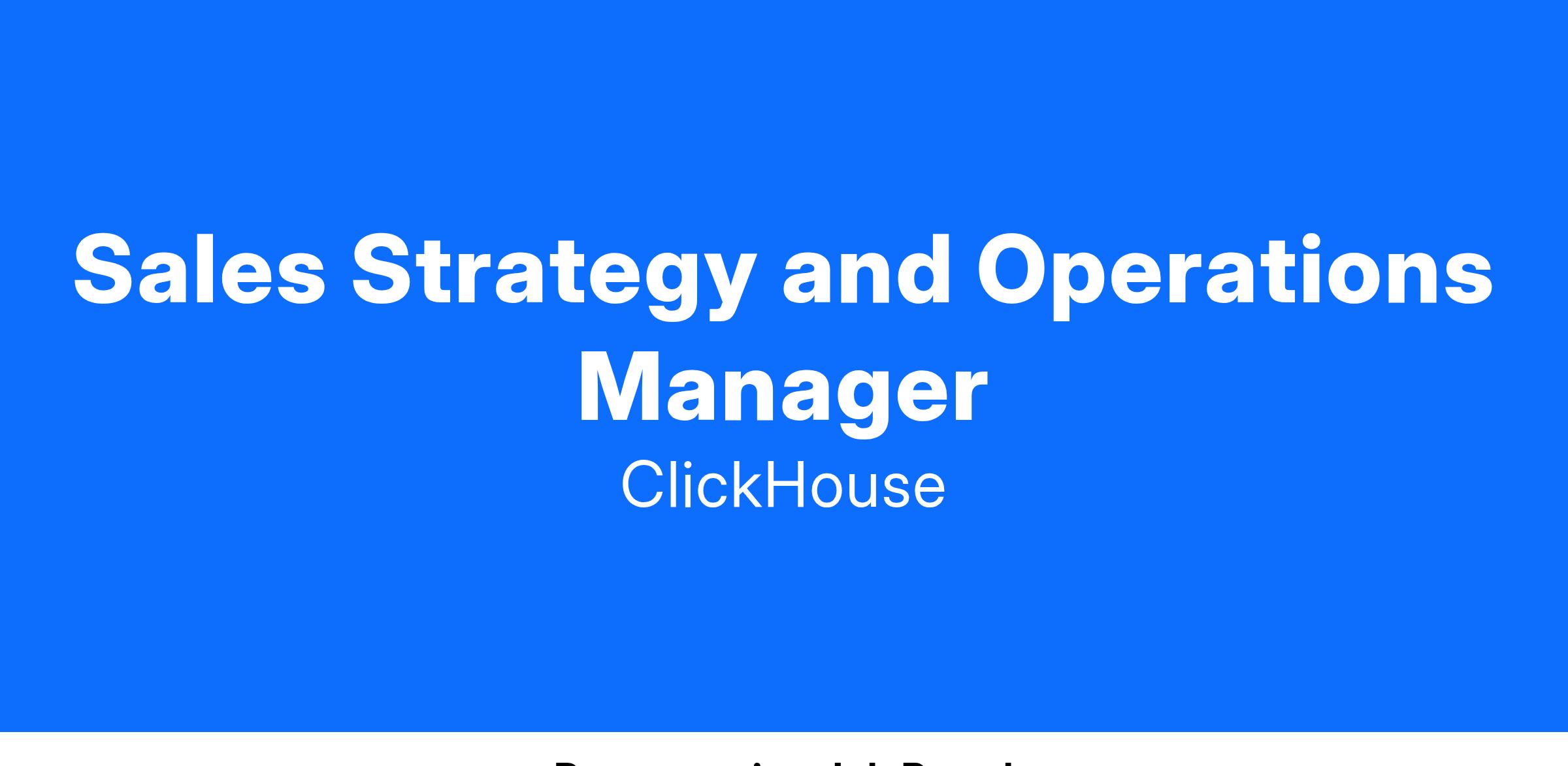 ClickHouse is looking for an experienced Sales Operations Manager to work closely with our sales team as a business partner to drive alignment and growth within the business through 1) analysis and reporting 2) execution of sales programs and tooling 3) driving efficient operations 4) sales strategy and planning. This role will be central in supporting our go-to-market strategy and will wear many hats within the operations team as the team scales with new initiatives. If this sounds like you, then we’d love to hear from you.