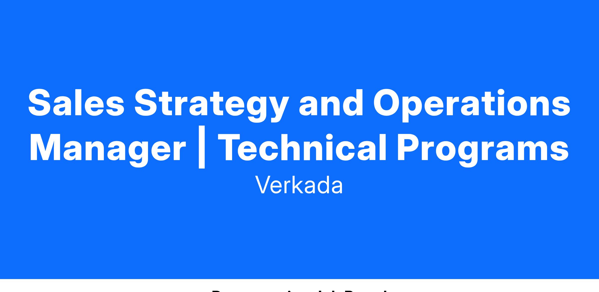 We are seeking a dynamic, entrepreneurial-minded leader to join our team as a Strategy and Operations Manager for Verkada’s Channel Technical Programs. In this role, you will have the unique opportunity to design and build programs that enable deeper technical alignment with our top strategic partners and broader partner ecosystem. You will be part of the broader Sales Strategy and Operations team, which spans across all GTM functions, and will work closely with our Channel, Sales, Marketing, and Strategic Finance teams to deliver a best-in-class partner experience.