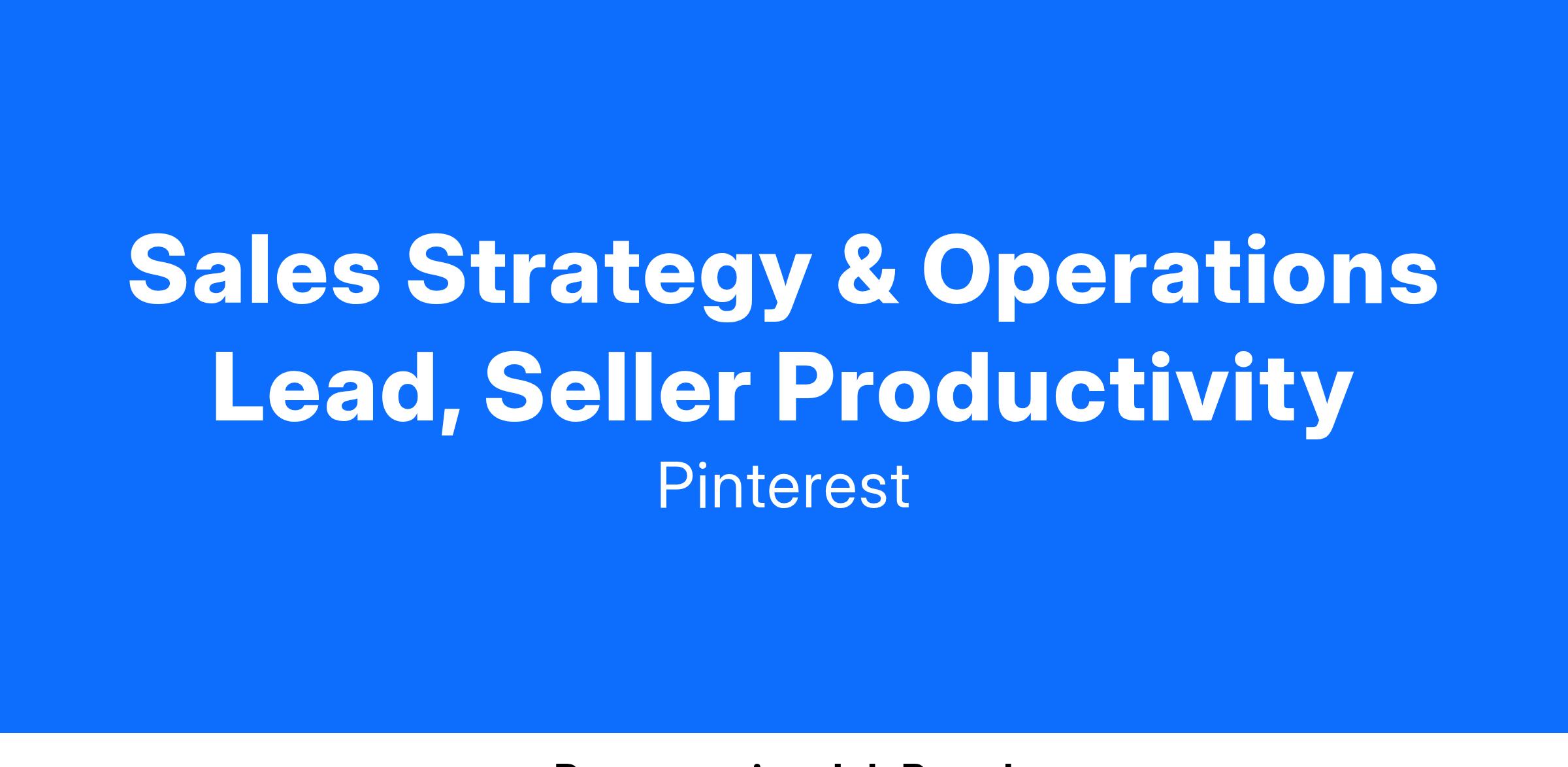 - Define Pinterest’s seller productivity roadmap based on findings from feedback mechanisms above and additional mechanisms, with alignment from Sales and cross functional leadership