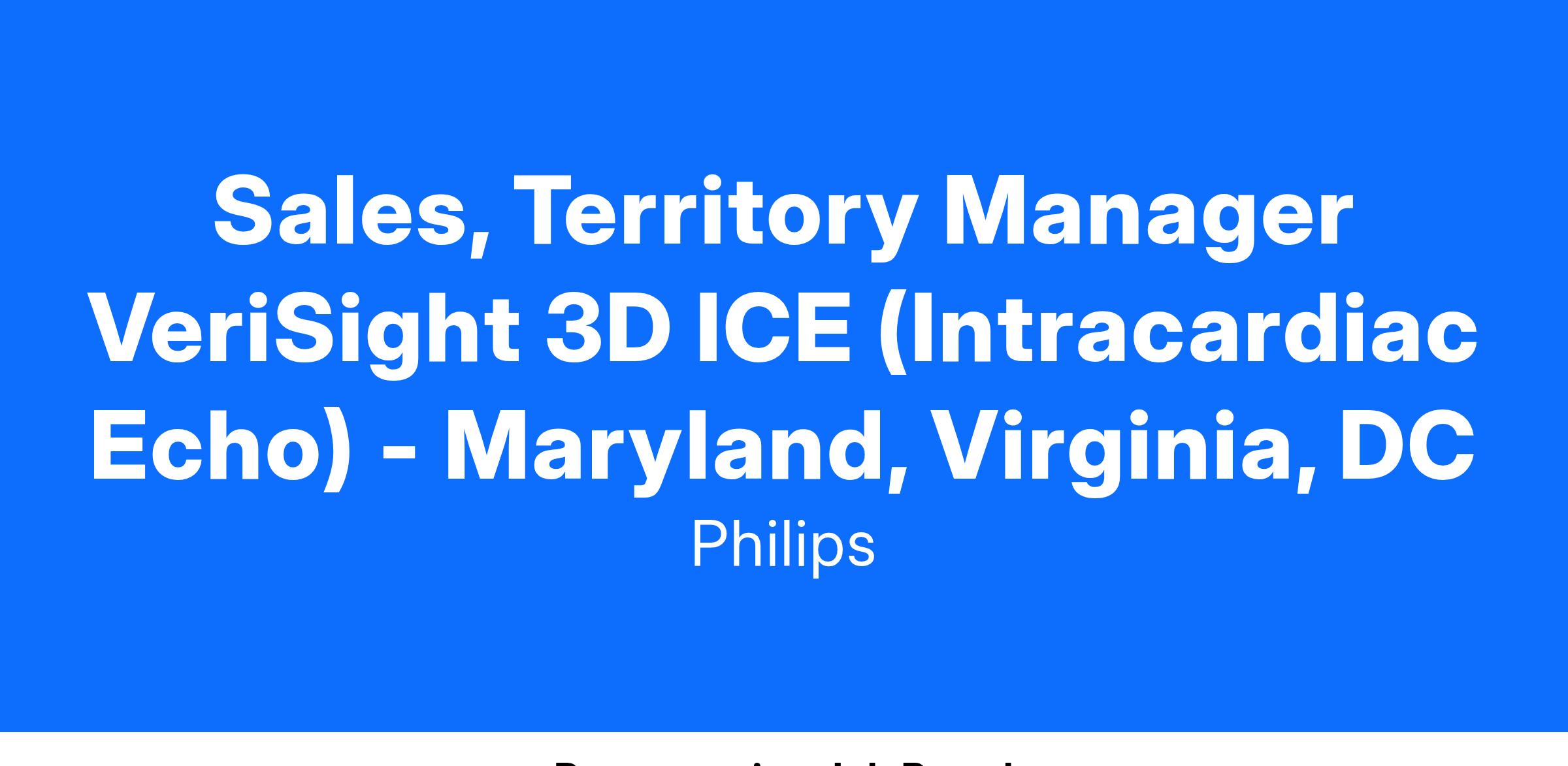 You live within the territory for this role. You must live in or within commuting distance to Maryland, Virginia, or Washington D.C. for this role.