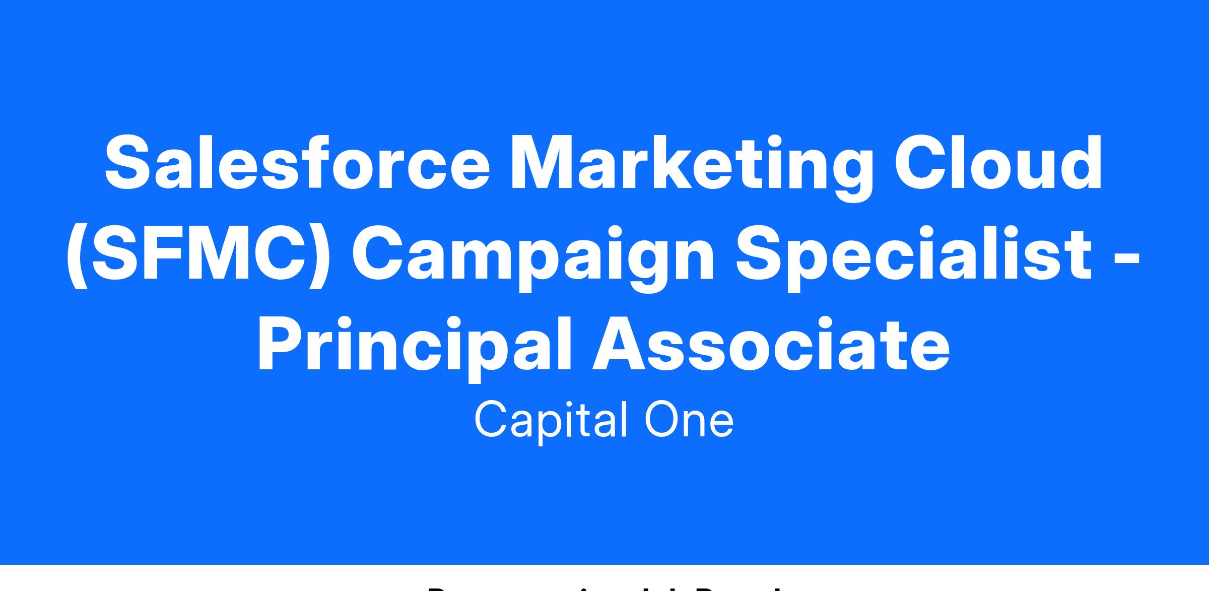 Capital One, a Fortune Magazine “100 Best Companies to Work For,” is seeking an experienced Salesforce Marketing Cloud (SFMC) Marketing Campaign Specialist. The Capital One US Card Business is transforming Marketing Operations to be a catalyst, enabling business teams to achieve their goals through the adoption of journey orchestration and marketing automation capabilities supported by well managed delivery processes.