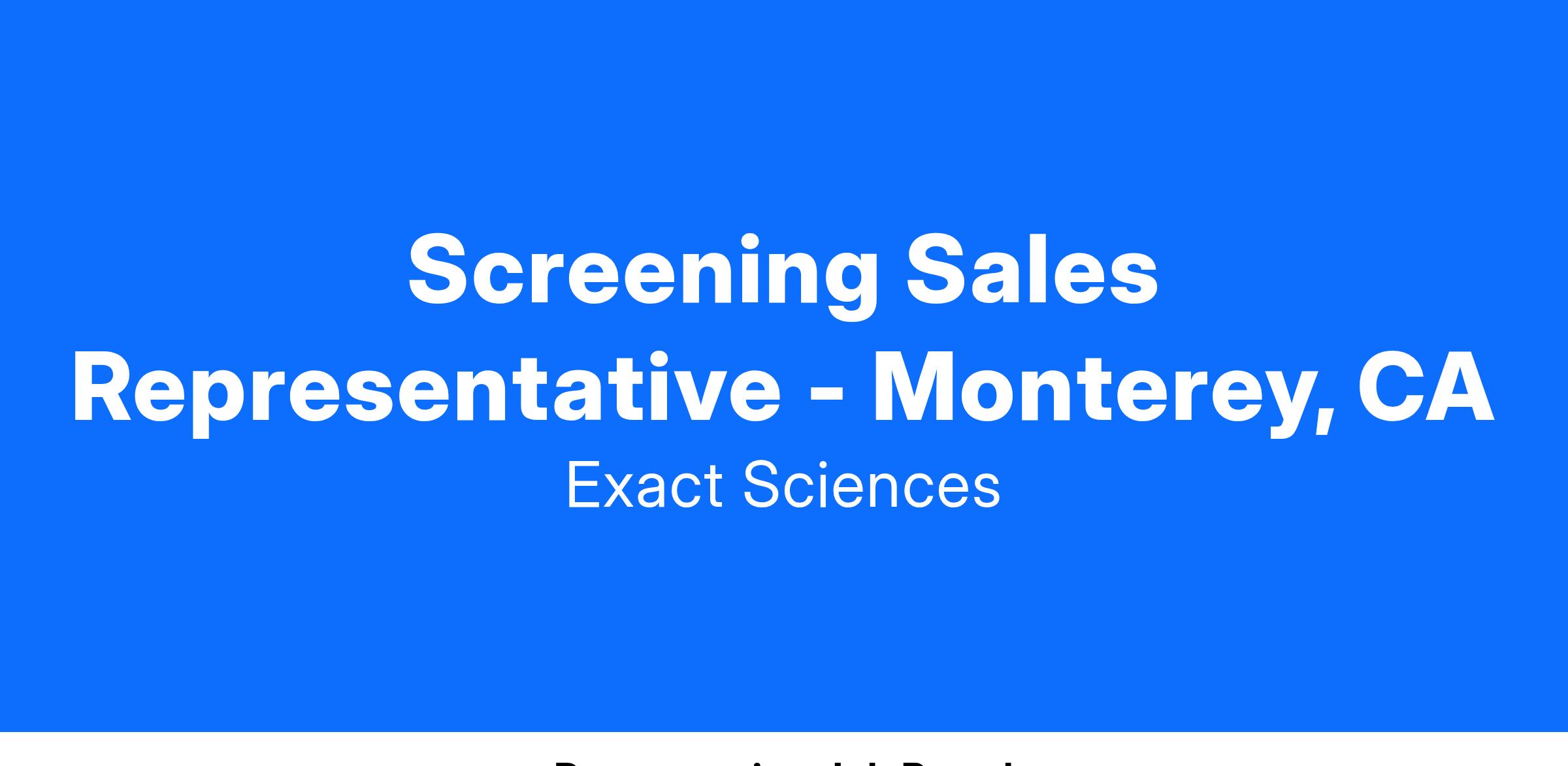 At Exact Sciences, we are cancer fighters. We are united by our mission to change lives by providing earlier, smarter answers. Through advances in cancer detection and treatment guidance, we will help eradicate the disease and the suffering it causes. A Screening Solutions Specialist (SSS) is a front-line position in the fight against cancer. The SSS will drive product growth of Cologuard in medical practices to meet sales goals within the assigned geography and deliver diagnostic solutions by establishing the importance of Colorectal Cancer (CRC) diseases and screening.