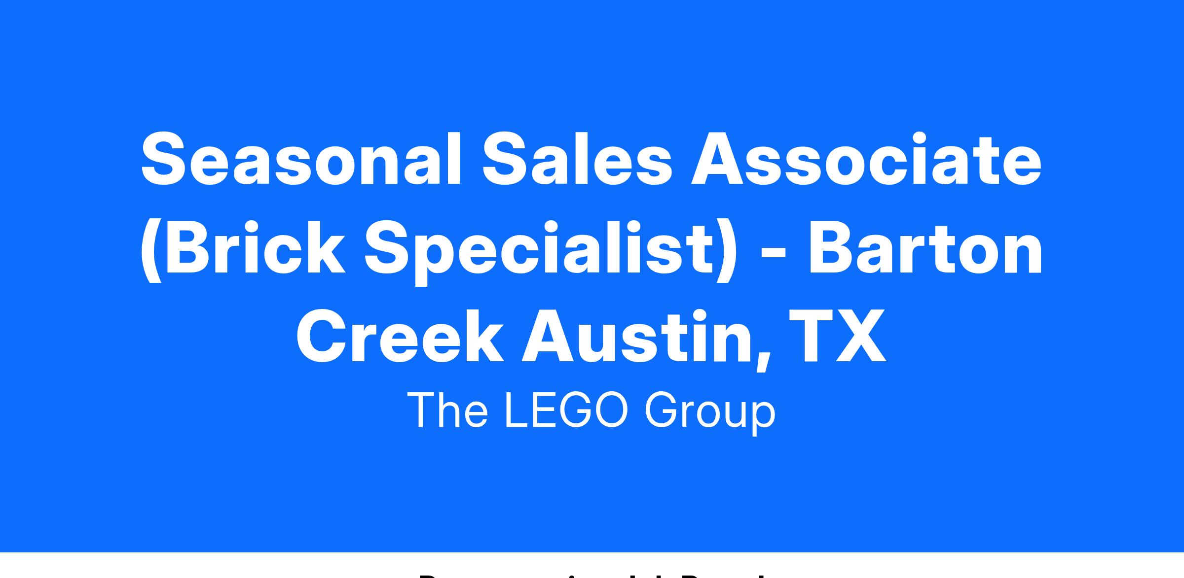 Join the LEGO® Brand Retail team as a Seasonal “Brick Specialist” and provide inspirational guest experiences in an interactive and vibrant store environment. We are looking for energetic, enthusiastic individuals to join us on a seasonal, part-time basis.