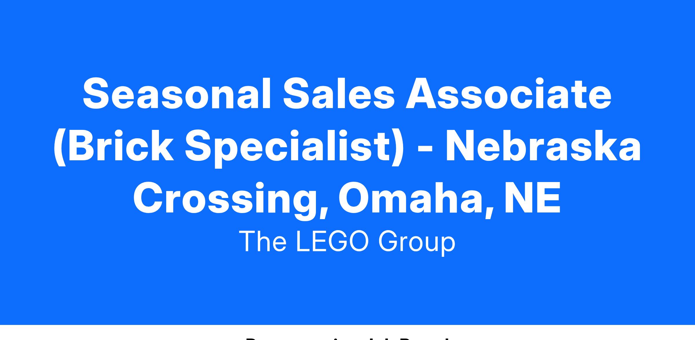 Join the LEGO® Brand Retail team as a Seasonal “Brick Specialist” and provide inspirational guest experiences in an interactive and vibrant store environment. We are looking for energetic, enthusiastic individuals to join us on a seasonal, part-time basis.