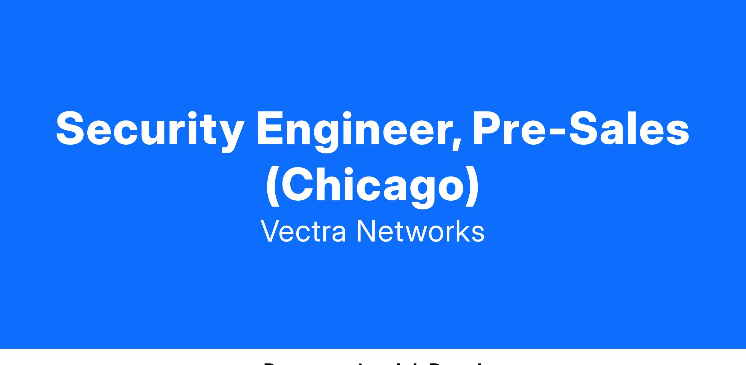 Vectra.ai is seeking a talented Security Engineer (Pre-Sales) to join our growing team. You'll maximise your deep security expertise to collaborate with Regional Sales Managers (RSMs) by working to understand key customer struggles and positioning and demonstrating the value of Vectra solutions and services that resolve them, while helping them understand the power of Vectra’s Cognito platform, explaining technical features, and problem-solving any potential roadblocks in real-time.