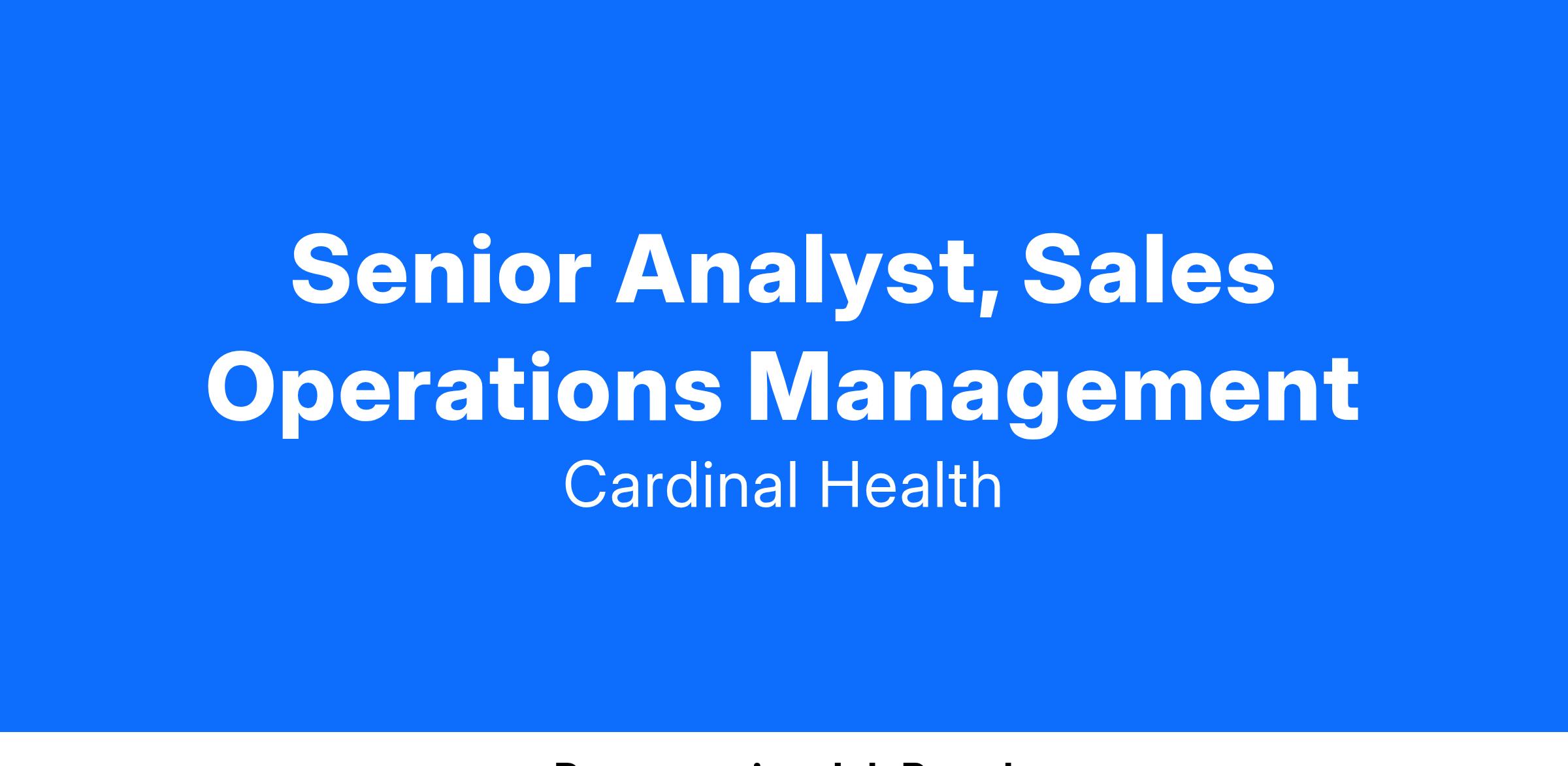 Cardinal Health supports an inclusive workplace that values diversity of thought, experience and background. We celebrate the power of our differences to create better solutions for our customers by ensuring employees can be their authentic selves each day. Cardinal Health is an Equal Opportunity/Affirmative Action employer. All qualified applicants will receive consideration for employment without regard to race, religion, color, national origin, ancestry, age, physical or mental disability, sex, sexual orientation, gender identity/expression, pregnancy, veteran status, marital status, creed, status with regard to public assistance, genetic status or any other status protected by federal, state or local law.