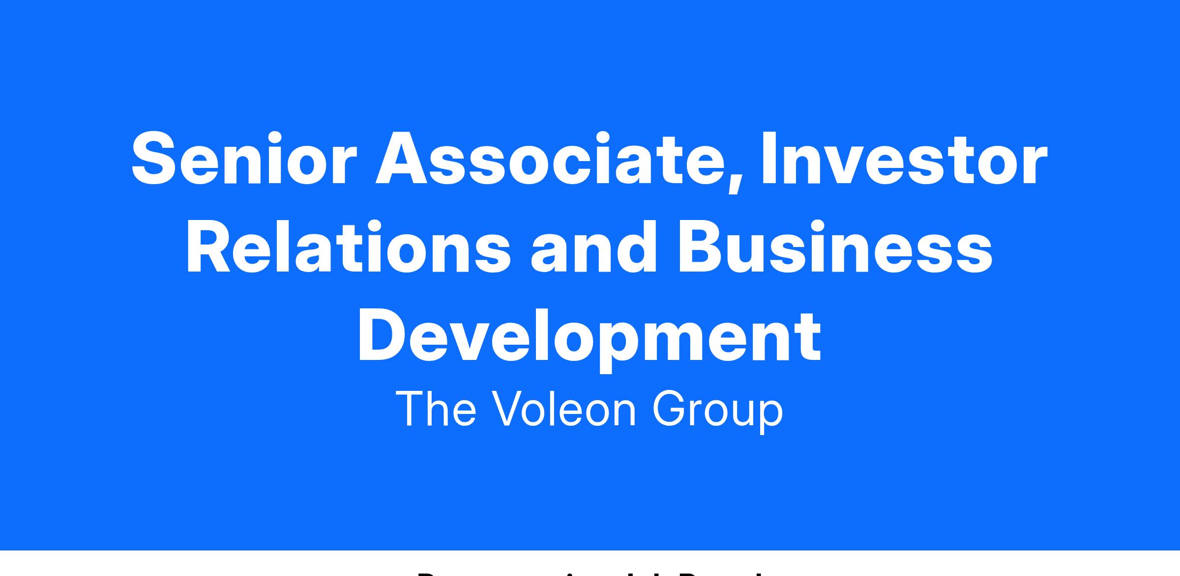As a member of our Investor Relations and Business Development team you will be responsible for helping to maintain and grow Voleon's institutional investor relationships. Reporting to the Head of Investor Relations and Business Development, you will work closely with our seasoned sales and relationship management team to strengthen our partnerships with some of the world's leading institutional investors. You will also support our senior sales professionals' work to identify and pursue new business development opportunities. This role is a means to make a difference: you will help us better serve our existing partners and connect potential future investors to one of the world's leading quantitative investment firms.