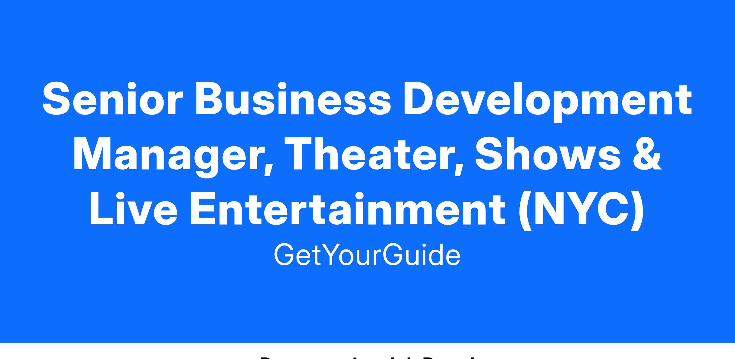 Are you passionate about the entertainment and events industry? Join our dynamic team as a Senior Business Development Manager, Shows & Events, and play a key role in our exciting growth journey. As we expand rapidly into new verticals, we seek a strategic and results-driven sales professional with a proven track record of success. If you have deep relationships in the industry, exceptional communication and influencing skills, and a knack for structured problem-solving, we want to hear from you! This is your chance to make a significant impact in the theater, and events sectors. Be part of a company where your contributions are valued and your career can thrive.