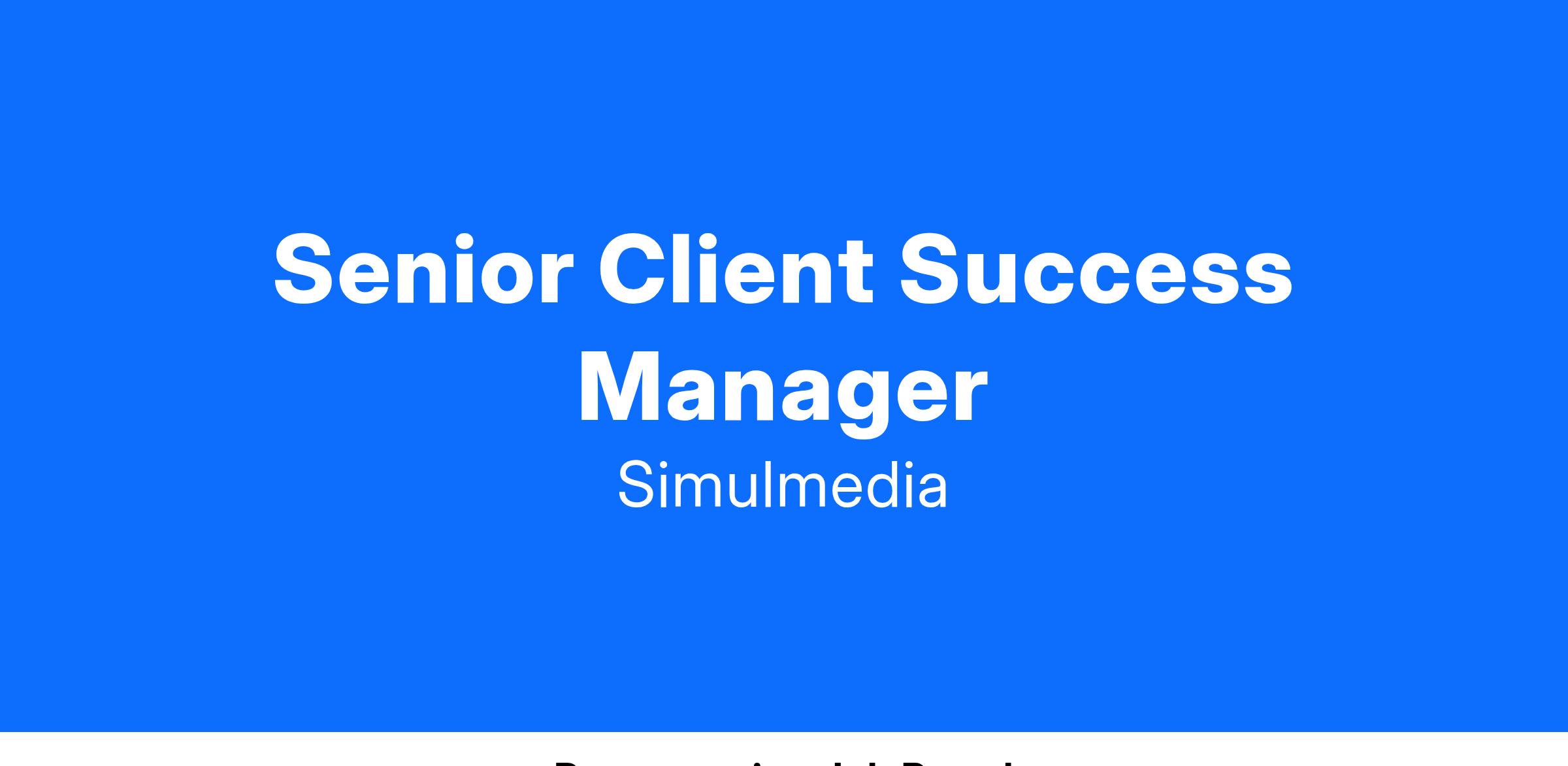 As a Senior Manager, Client Success at Simulmedia, you will be instrumental in driving the success of our clients in the entertainment space, while developing impactful media strategies to fuel new business growth. Your expertise in client engagement, understanding of tune-in trends, and strategic insight into the entertainment landscape will be essential for your success in this role.