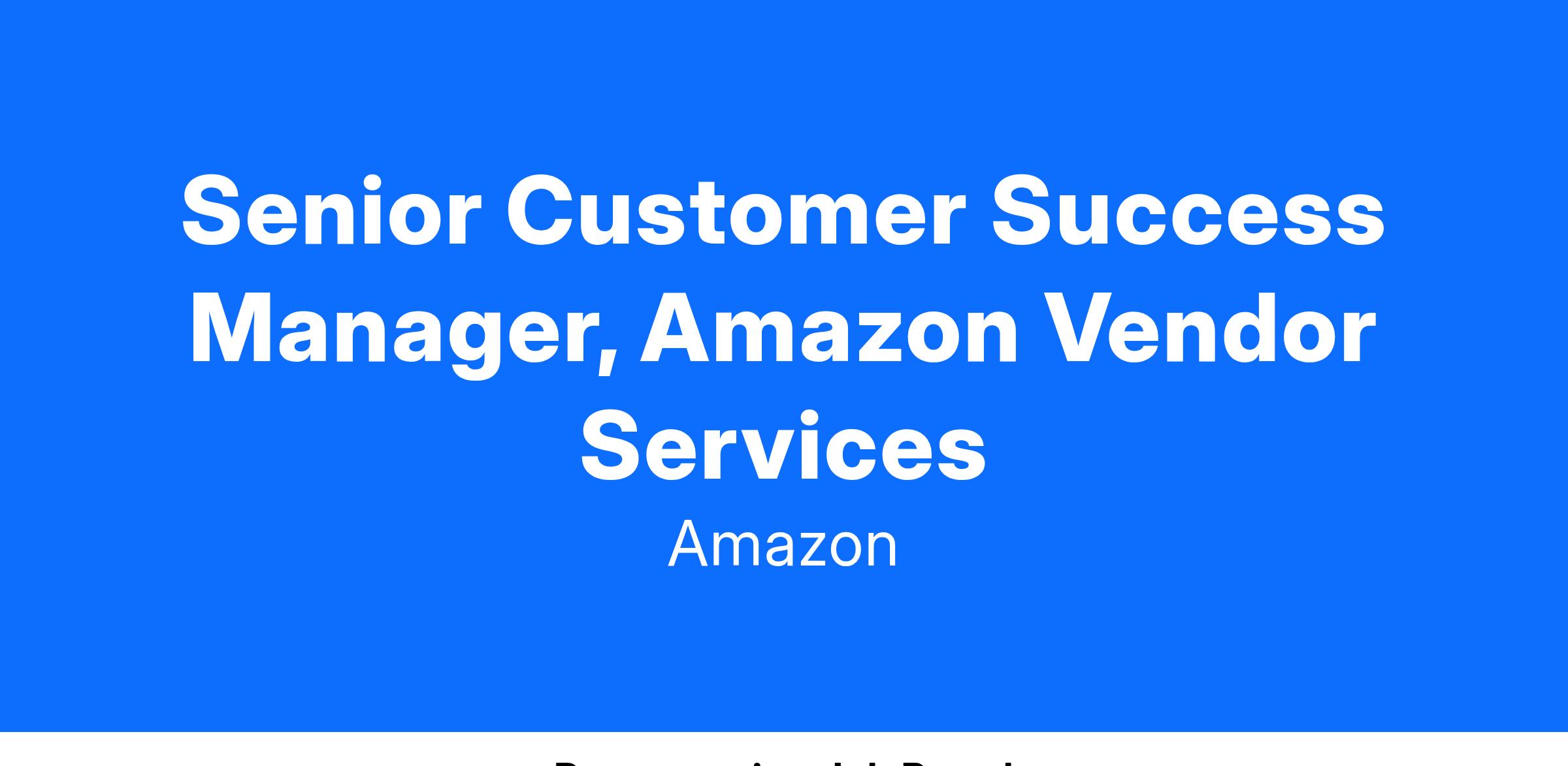 Our goals include providing the best vendor experience, a rewarding Senior Customer Success Manager experience, and ultimately to enhance the experience of our end customers. You will collaborate with a team of 6-10 Senior Customer Success Managers to innovate, continuously improve, learn, and grow for the benefit of both vendors and Amazon’s millions of customers.