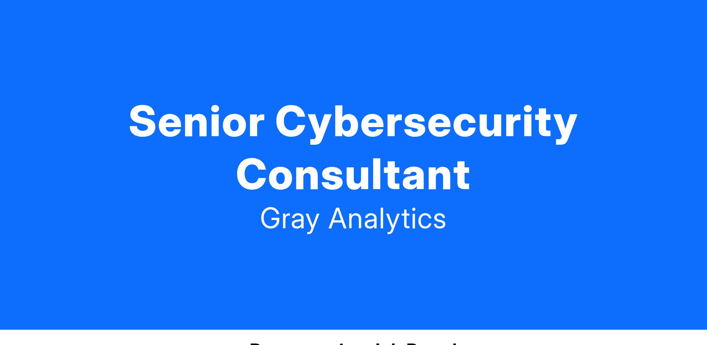 Gray Analytics is seeking a motivated and dedicated Senior Cybersecurity Consultant to assess, advise, and support commercial clients.