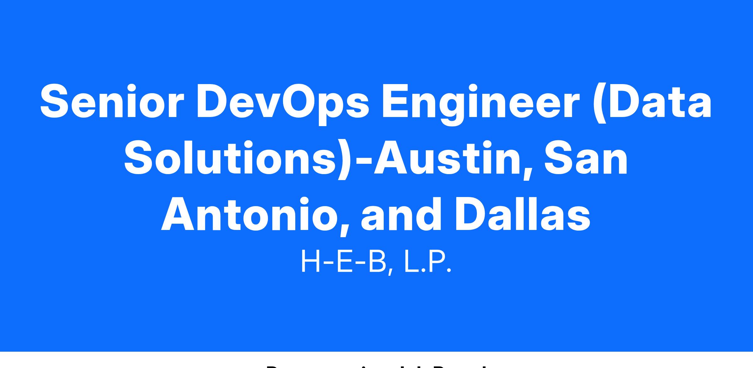 Our Partners thrive The H-E-B Way. In the Senior DevOps Engineer (Data Solutions) job, that means you have a...