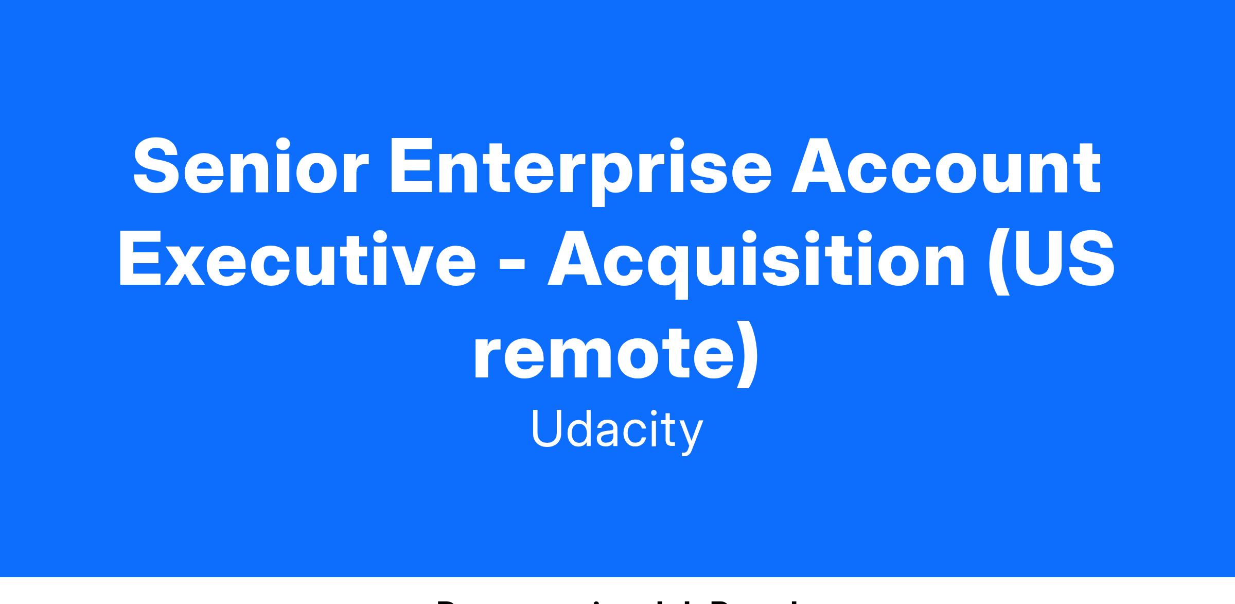 As a Sr. Enterprise Account Executive on our Acquisition team, you'll drive our rapidly growing enterprise business through new client acquisition in your assigned region. You will help leading companies empower their teams with training in the latest technologies that amplify their ability to deliver powerful new products and services on a global scale. Weโre seeking a hungry seller with a proven track record selling to C-level executives at Global 2000/Fortune 1,000 companies. Udacity is a fast-paced start up where you will have a voice and the opportunity to grow your career. If you thrive in this type of environment, read on!