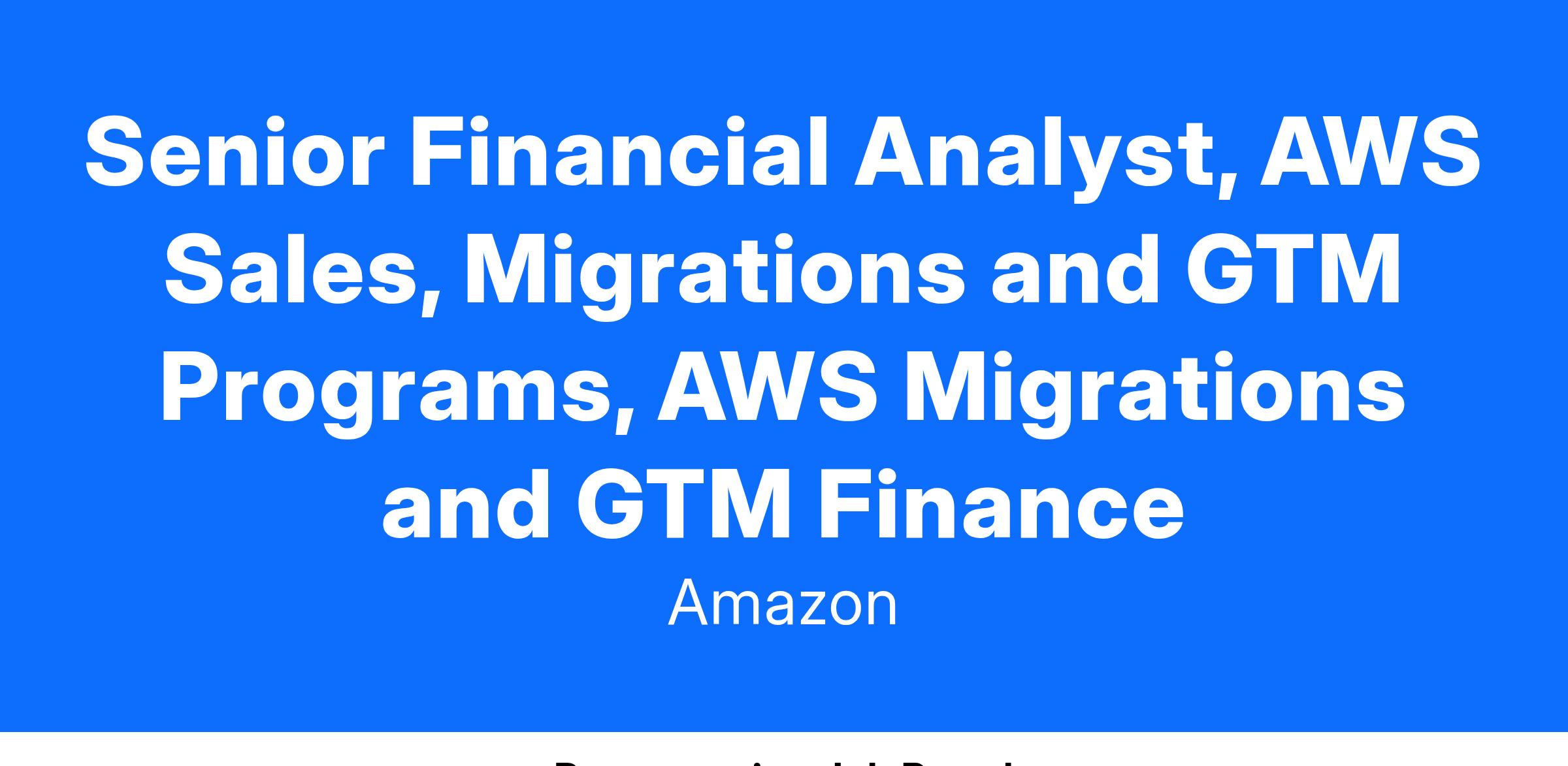 Senior Financial Analyst, AWS Sales, Migrations and GTM Programs, AWS Migrations and GTM Finance