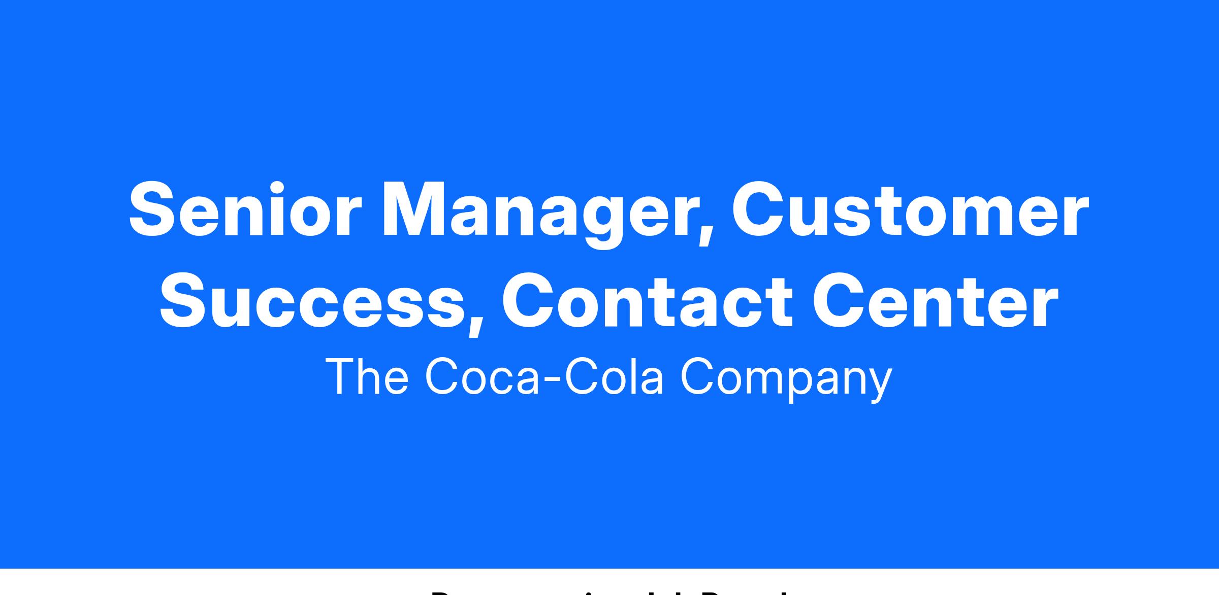 Senior Manager, Customer Success, Contact Center