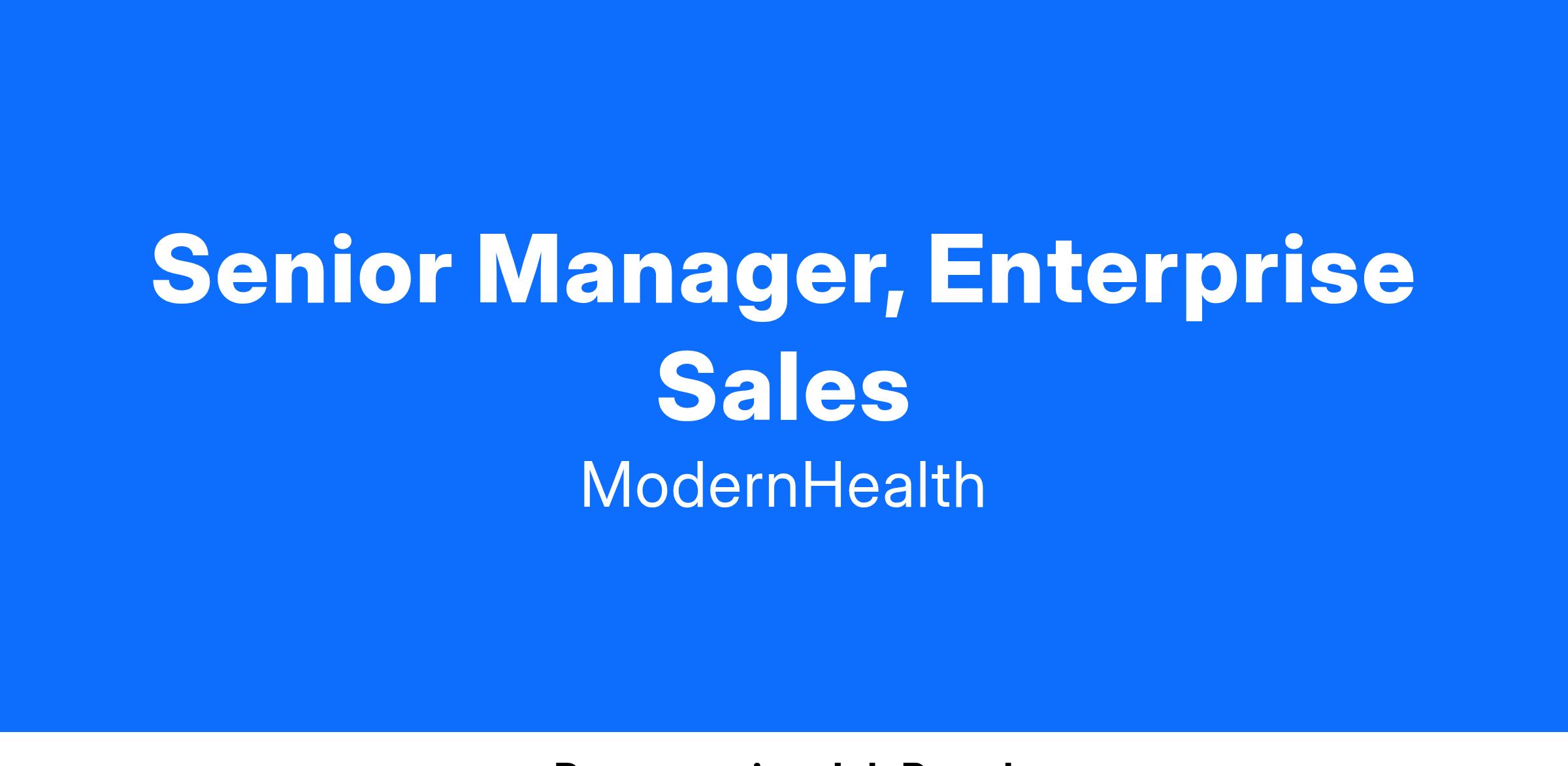 At Modern Health we have a highly collaborative sales team, where we seek to get better every day and work as a team to reach both our revenue targets and our mission of delivering behavioral health solutions to millions of people around the world! As the Senior Manager, Enterprise Sales, you will manage and scale our growing sales team. More specifically, you'll own the training, strategy, and design of this team to achieve high performance revenue goals.