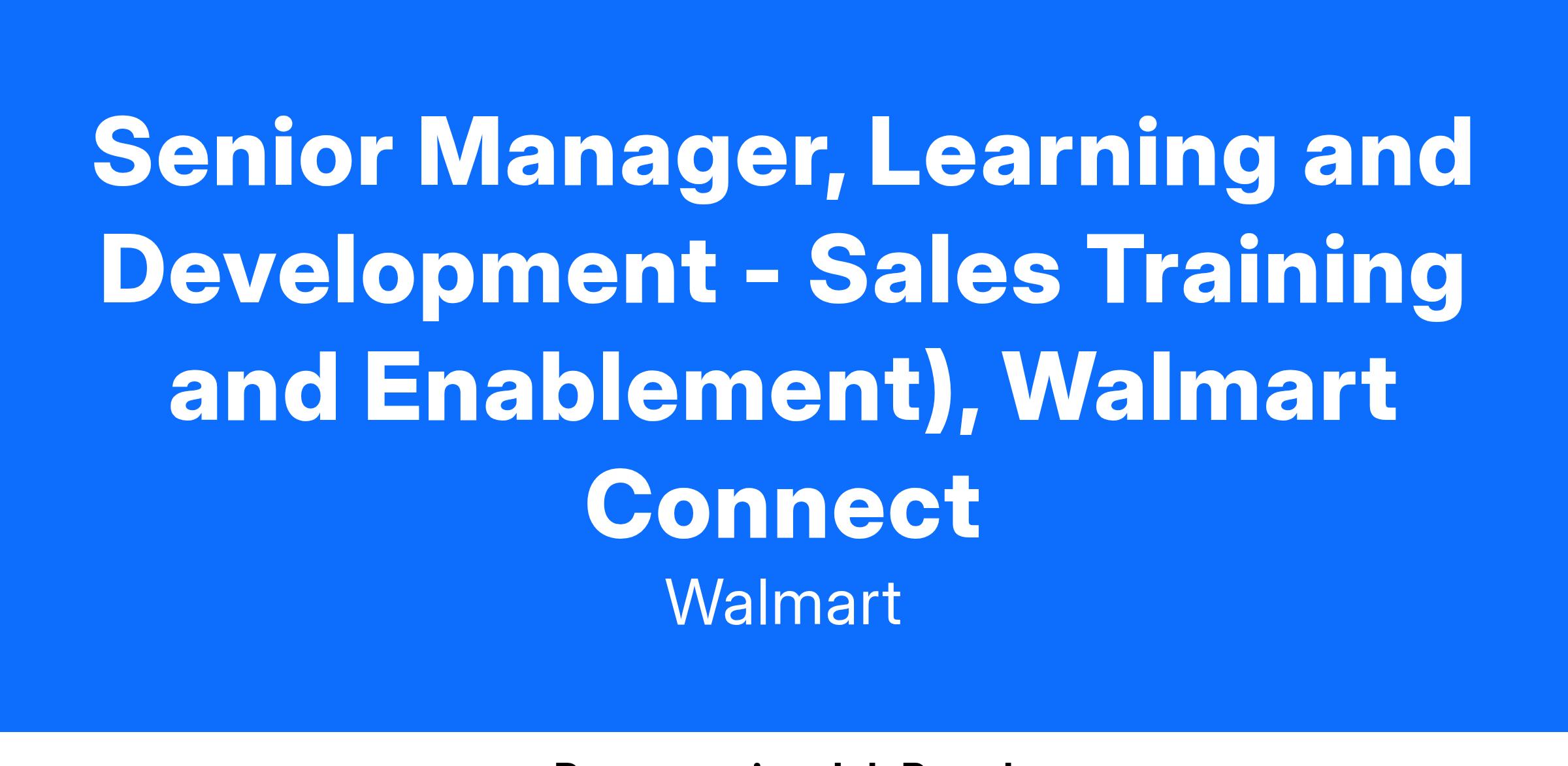 Walmart Connect is seeking an experienced education professional to lead the sales training and enablement programs for our sales organization.