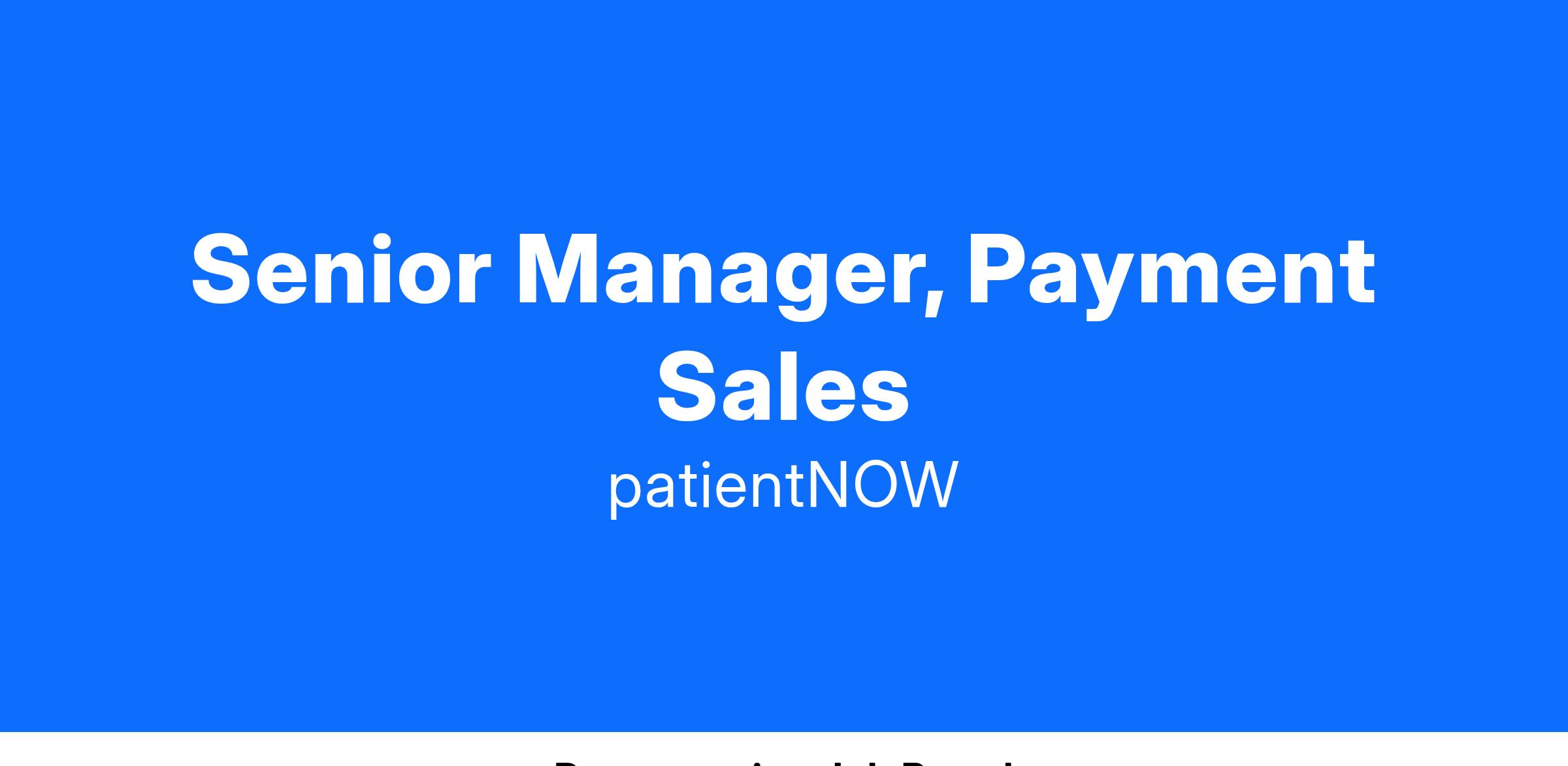 Position Summary: The Senior Manager, Payment Sales is directly responsible for leading the payments cross sales initiative. This position will facilitate as the team manager and will be responsible for achieving the payments cross sales team’s quota.
