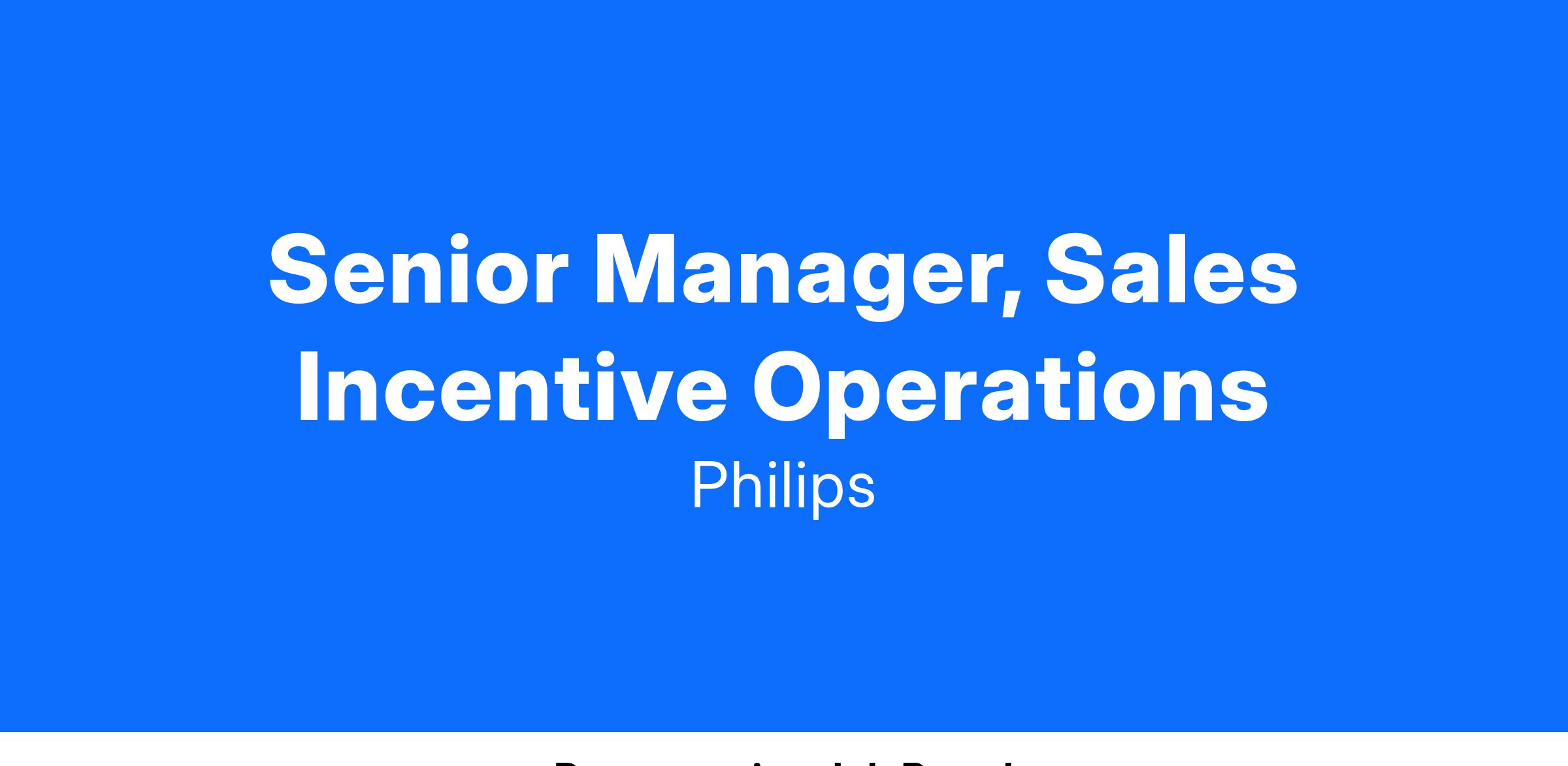 Philips is looking for a Senior Manager, Sales Incentive Operations to be a subject matter expert within the commissions execution team. You will lead the strategy, operational needs, and analytics for a high-performance customer-facing organization. To be successful, you will have a strong analytical background, experience in process design, and other analytical business practices. You have demonstrated experience with the administration of compensation plans with the added ability to drive execution around multiple compensation plan structures.