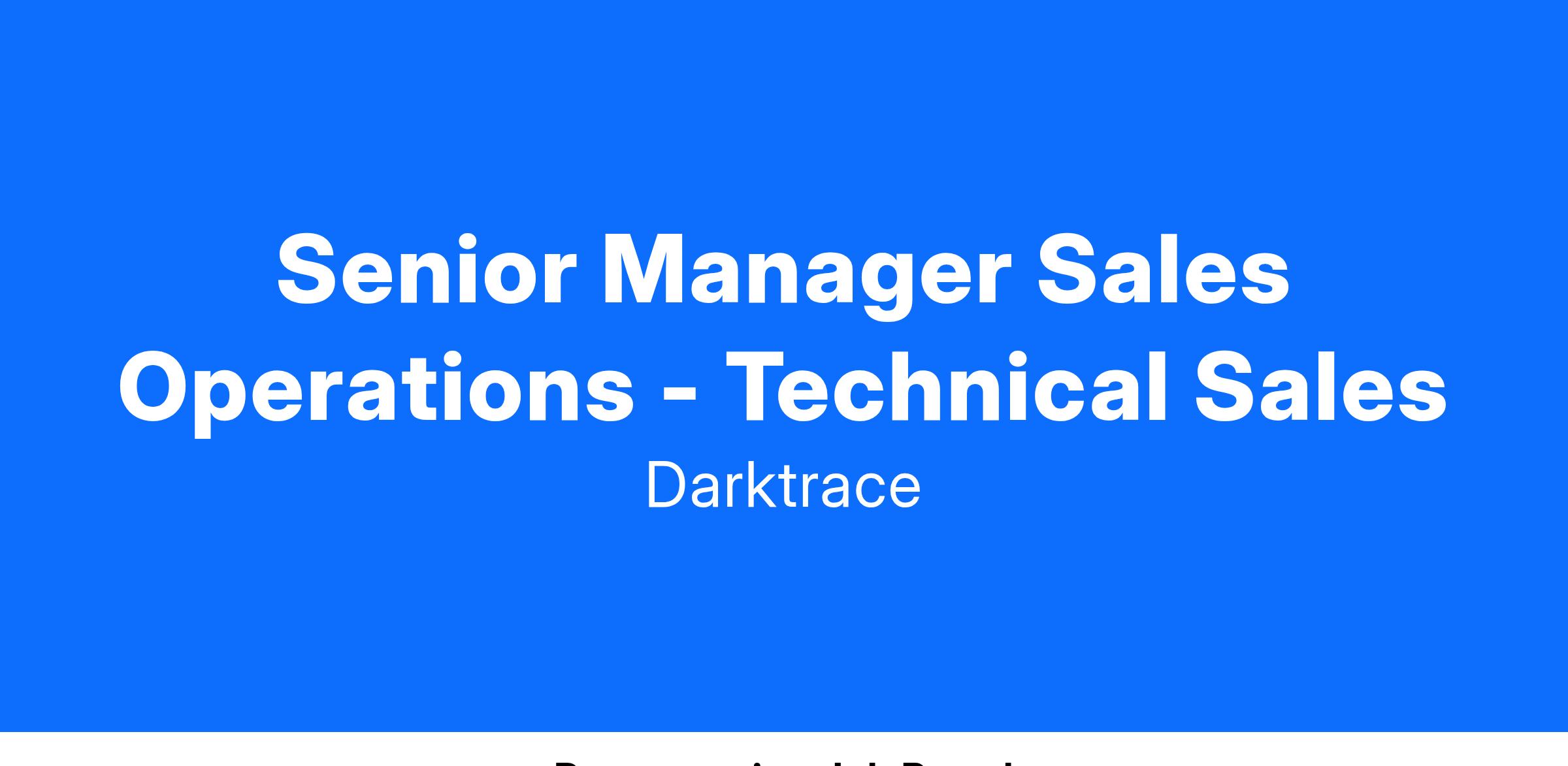 The Senior Manager / Director, Sales Operations β Technical Sales is a critical role within the Revenue Operations team, responsible for driving operational excellence and efficiency to support the Solution Engineering team's success. This role will act as a strategic partner with the Regional Chief Technology Officer and Solution Engineering leader.