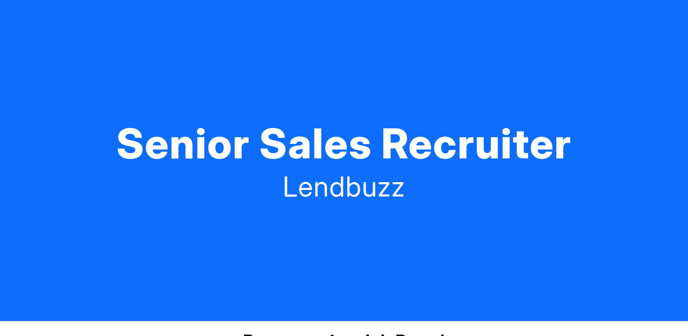 At Lendbuzz, we believe financial opportunities should be more personalized and fair. We develop innovative technologies that provide underserved and overlooked borrowers with better access to credit. From our employees to our dealers, partners, and borrowers, weβve built a company and a culture around a resolute belief in the promise and power of diversity. We value independent and critical thinking. We are seeking a talented and enthusiastic individual to join our rapidly growing Sales Team as a Senior Recruiter. This position will report directly to the Chief Sales Officer and collaborate closely to achieve the companyβs hiring goals. If you're passionate about connecting talented individuals with exciting opportunities in a dynamic FinTech environment, we invite you to apply and be a key contributor to our dynamic team.