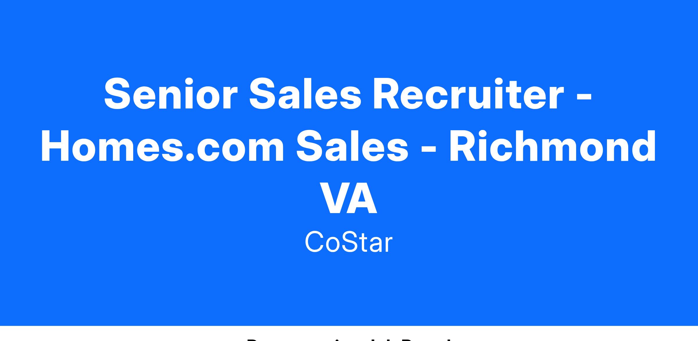 CoStar Group is an Equal Employment Opportunity Employer; we maintain a drug-free workplace and perform pre-employment substance abuse testing