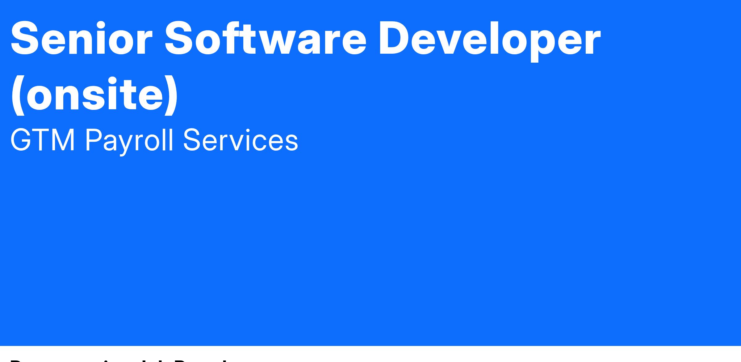 GTM Payroll Services Inc., in Clifton Park, NY is hiring a full-time Senior Software Developer to build and support products for our clients and operational needs.