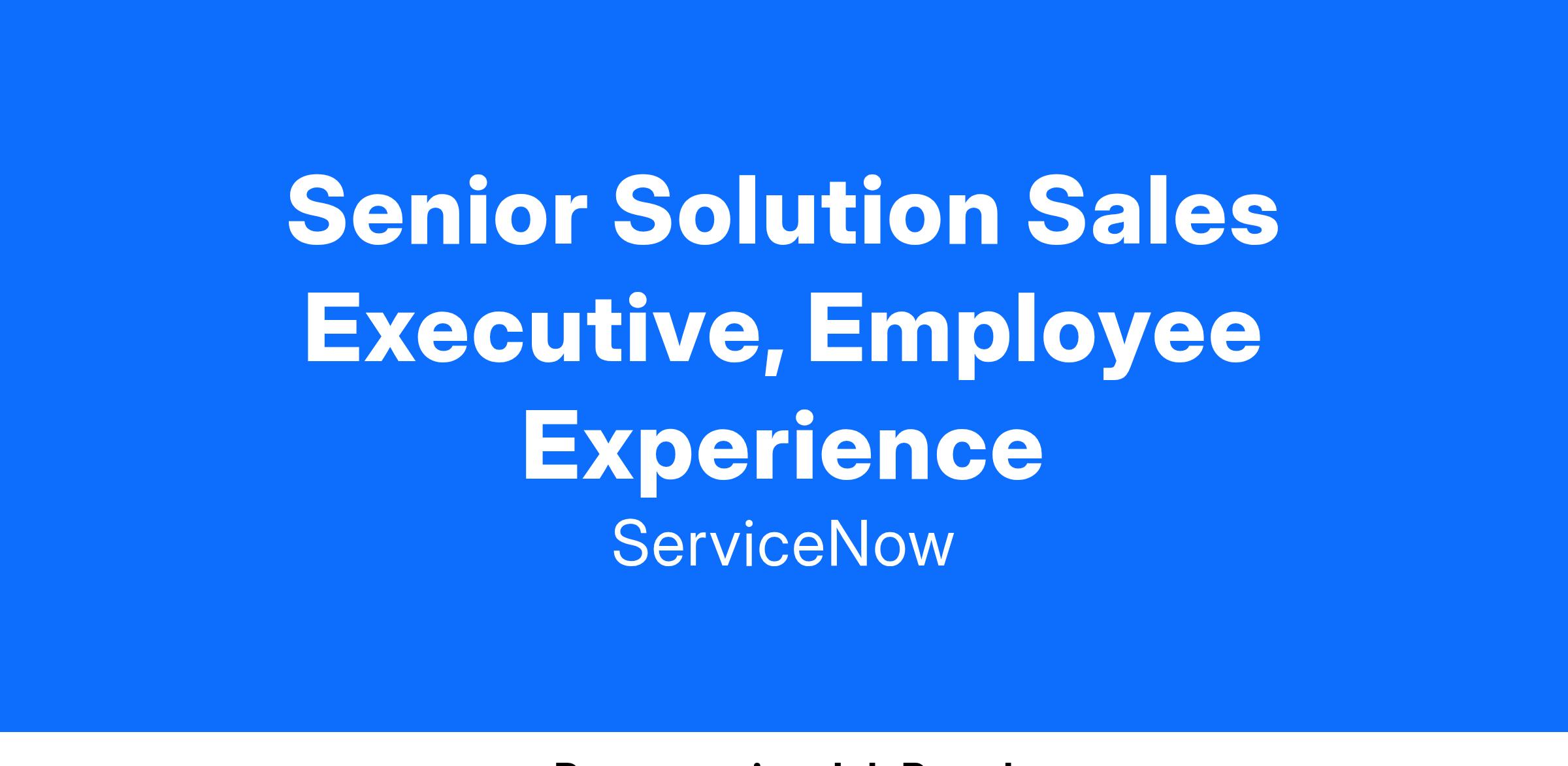 The Solution Sales Executive will be responsible for market success of ServiceNow's Employee Workflow product suite which includes Employee Experience, Enterprise Service Management, HR Service Delivery and Workplace Service Delivery.