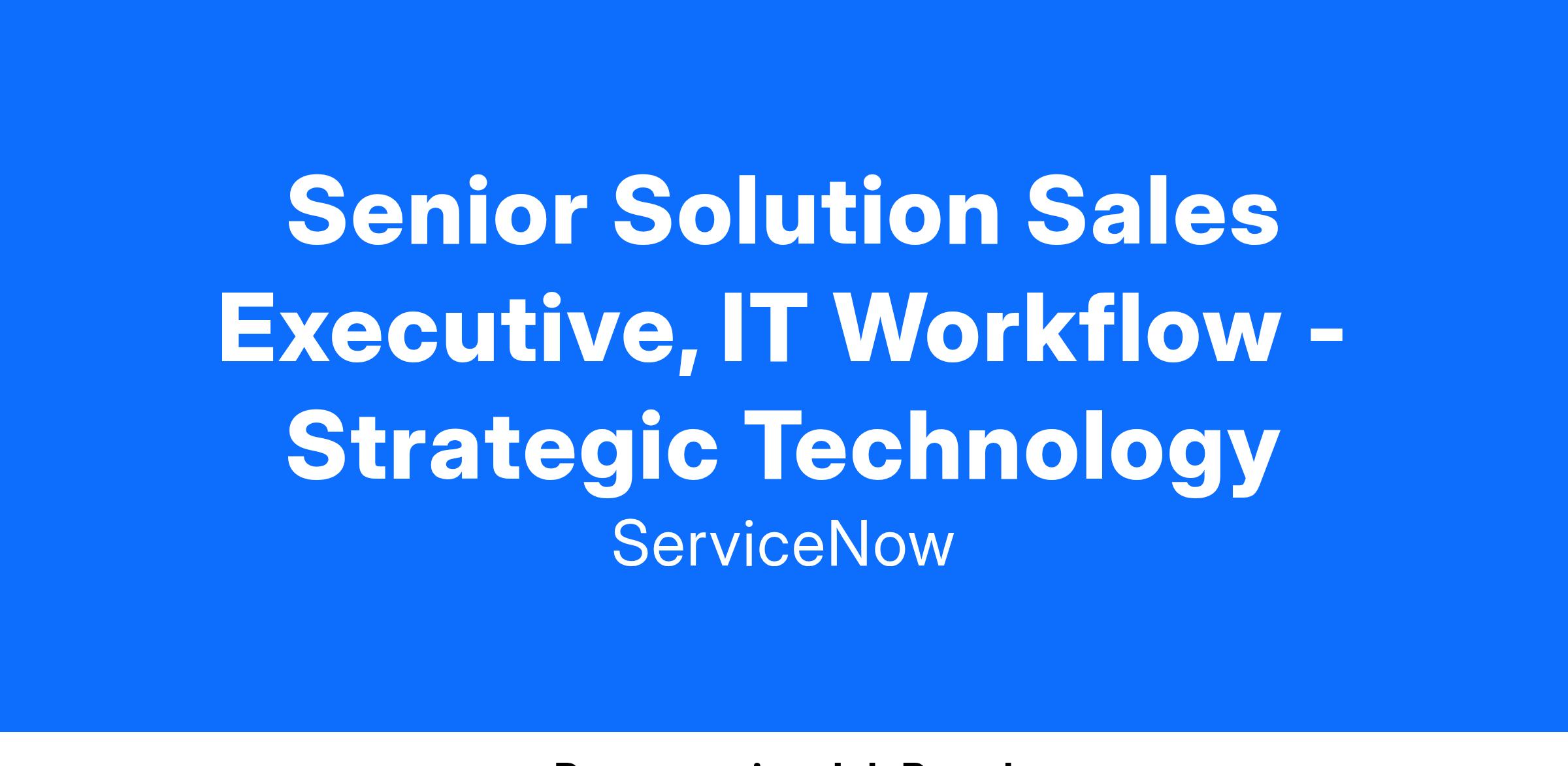 The Solution Sales Executive will oversee market success of ServiceNow's IT Workflow products. These products are built on our market leading Service Management platform and create a single source of truth that allows enterprise processes to execute with uniform information.