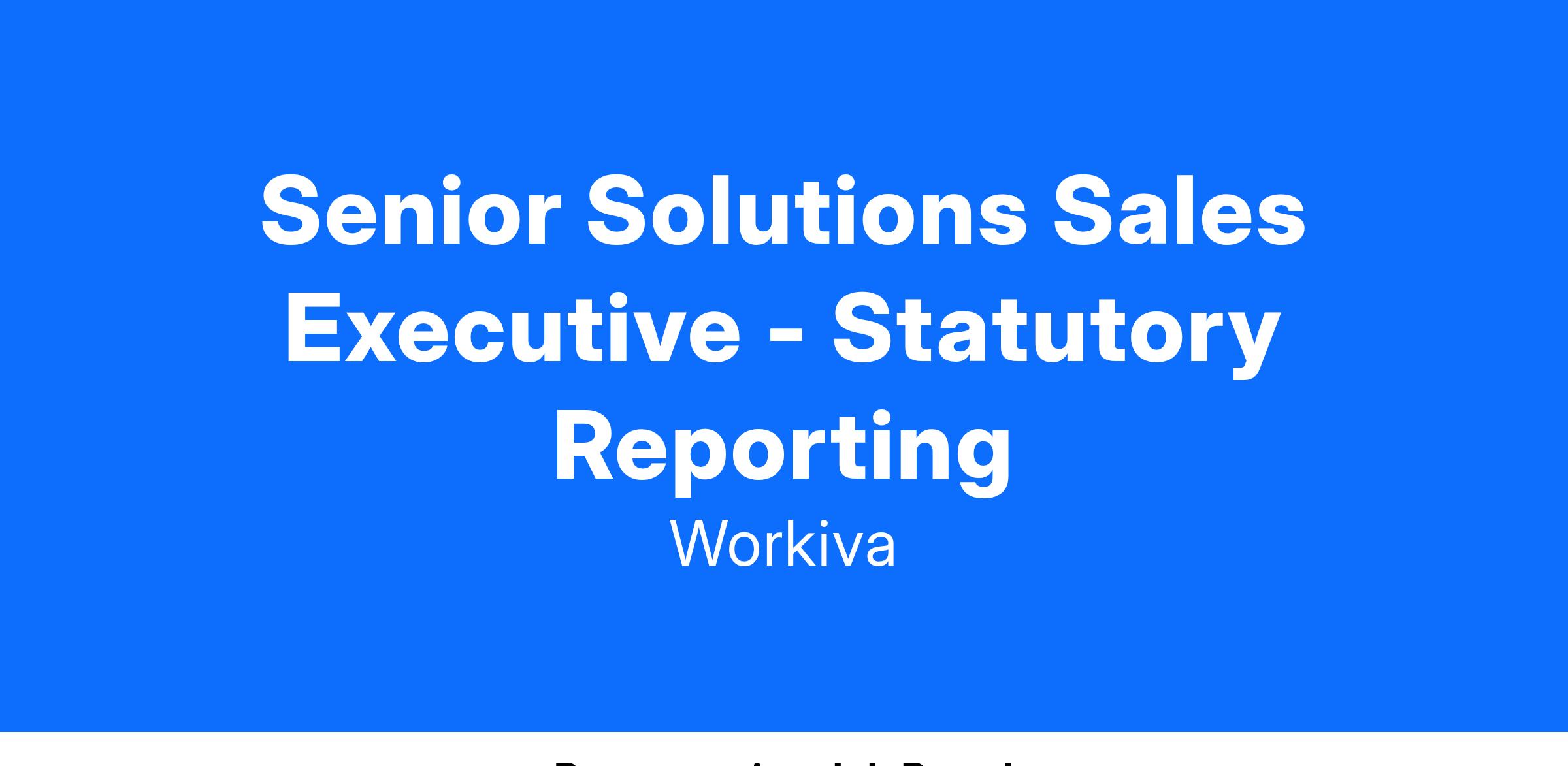 The Senior Solution Sales Executive is responsible for obtaining new business and customer expansion sales opportunities from Executive-level buyers and influencers in either private or publicly traded companies. Solution sellers are focused on a specific portfolio of Workiva solutions and collaborate with other Workiva sales teams to deliver multi-solution sales. This role is focused on Workiva's Statutory Reporting solutions.