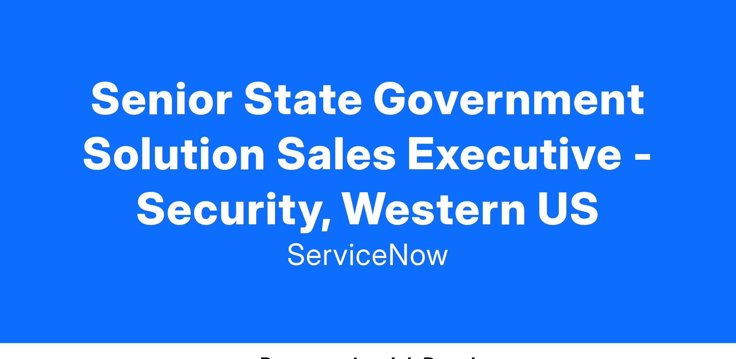 ServiceNow is looking for a Solution Sales Executive that will be responsible for market success of ServiceNow's Security Products across the Western US State Government Agencies. This is a remote based role covering the Western US State Markets and we are seeking this hire to reside in territory ( Western US Locations, TX and west)