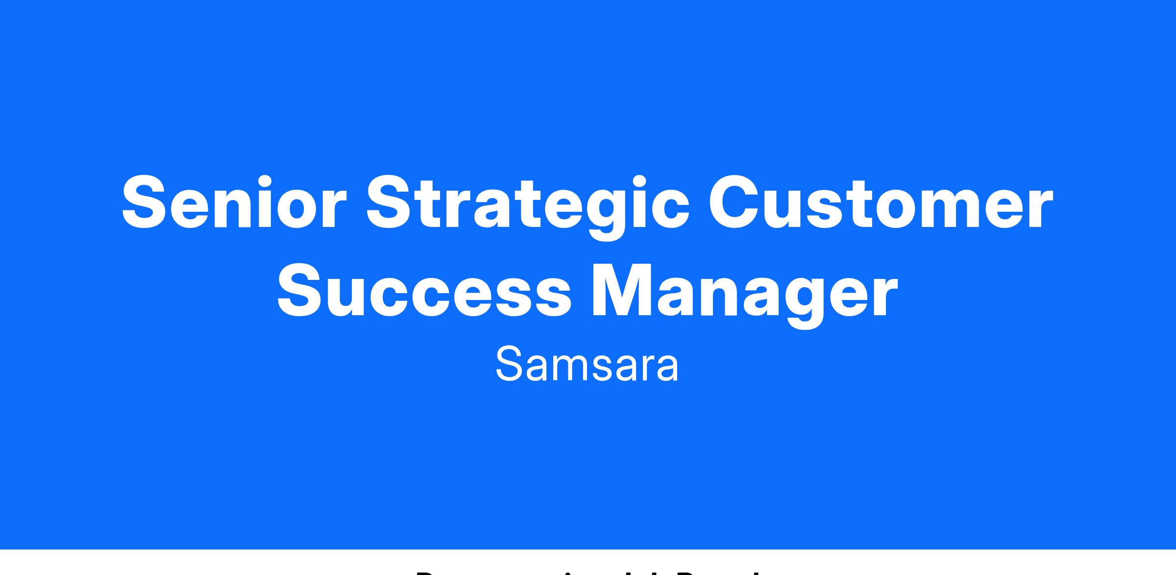 Senior Strategic Customer Success Managers partner closely with our lighthouse customers to understand their business and unique challenges, advise them on how to best leverage Samsara to meet their goals, and, ultimately, help them continuously realize business value from our products and services. You are the trusted advisor to our largest customers, managing the customer lifecycle once onboarding is complete through adoption, advocacy, and renewal.