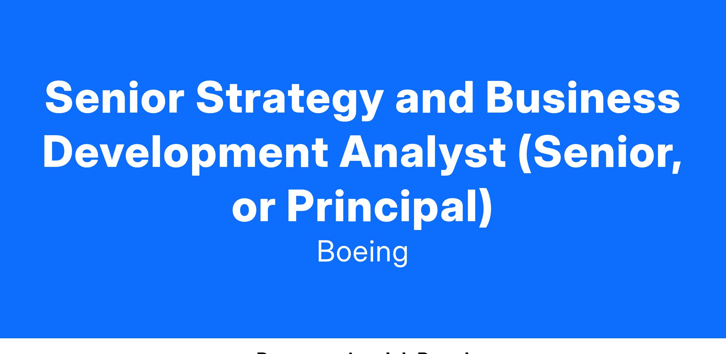 Boeing Global Services (BGS) has an exciting opportunity in the BGS Parts and Distribution Services Strategy and Business Development team for a Strategy and Business Development Analyst (Senior, or Principal Levels). This team is responsible for strategy and growth of our parts and distribution services business by identifying and unlocking new opportunities in Plano, TX.