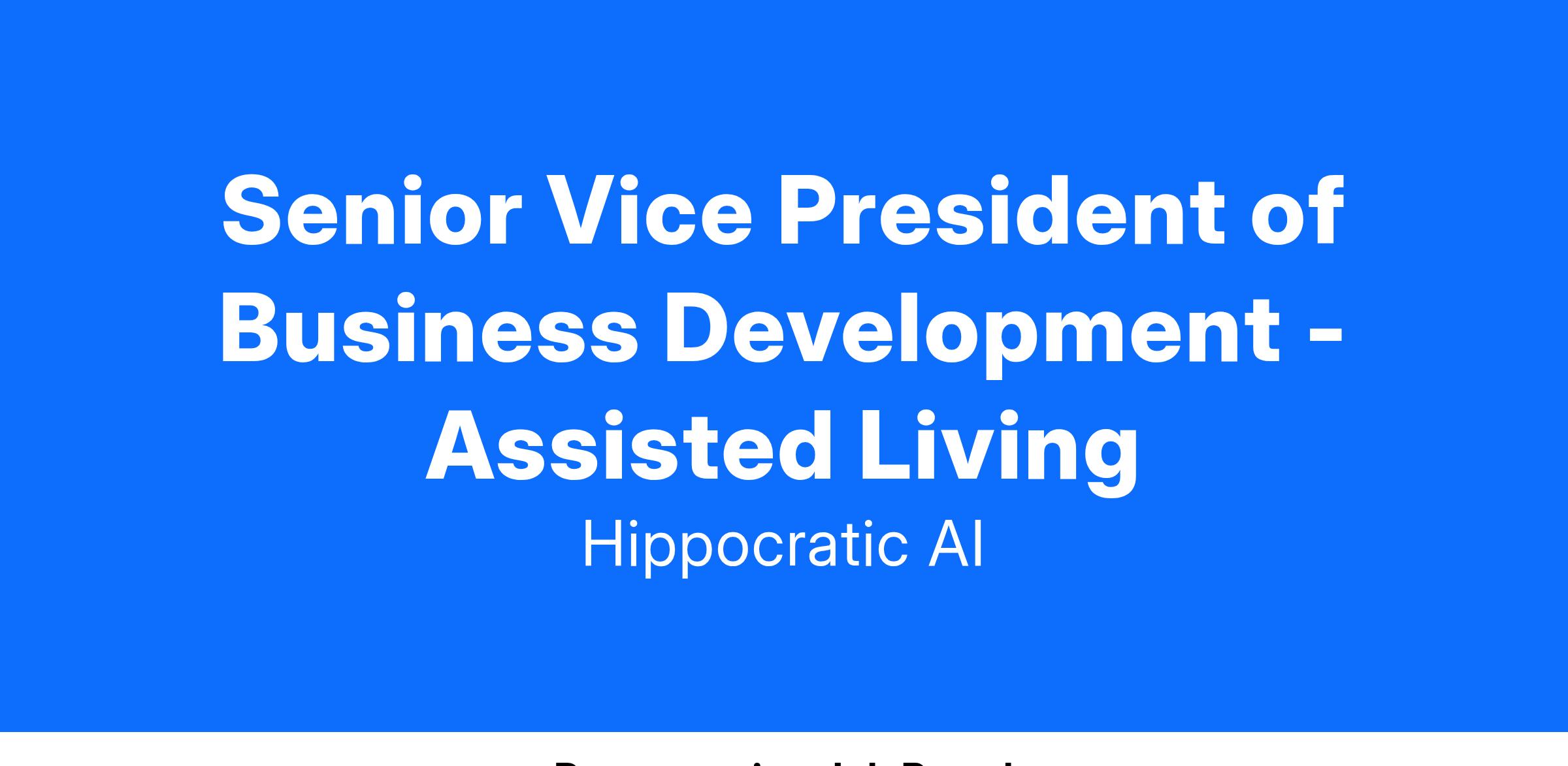 As the Vice President of Business Development for the Assisted Living Vertical at Hippocratic AI, you will play a pivotal role in driving growth and forging strategic partnerships within the assisted living industry. Drawing upon your established network and deep understanding of the assisted living landscape, you will lead initiatives to establish Hippocratic AI as a trusted partner for assisted living communities seeking innovative solutions to enhance resident care and support. This position offers a unique opportunity to shape the future of AI-driven assisted living and make a meaningful impact on resident outcomes.