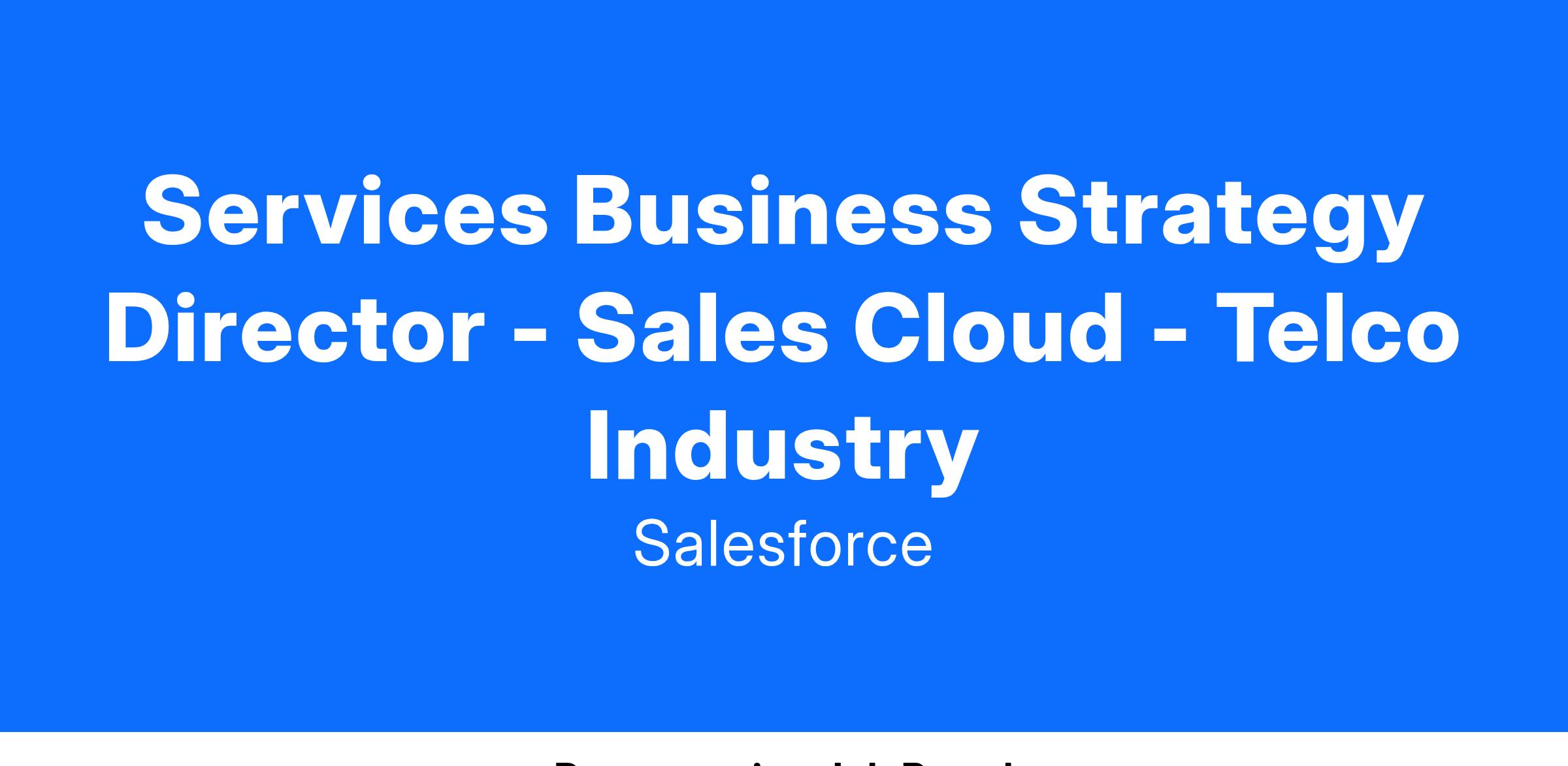The Sales Cloud Strategists lead and drive vision, strategy, and alignment with our Salesforce Telco customers’ Sales Cloud Leaders. We focus on delivering vision-to-value by redefining our customers’ businesses through an experience-led, human-centered approach. We bring a deep level of expertise in transforming businesses and brands—focusing on seamlessly integrating business goals and the power of our Salesforce platform. We work with customers to define their vision, plan their strategies and launch ground-breaking experiences that create measurable impact. This position will support our Comms industry teams.