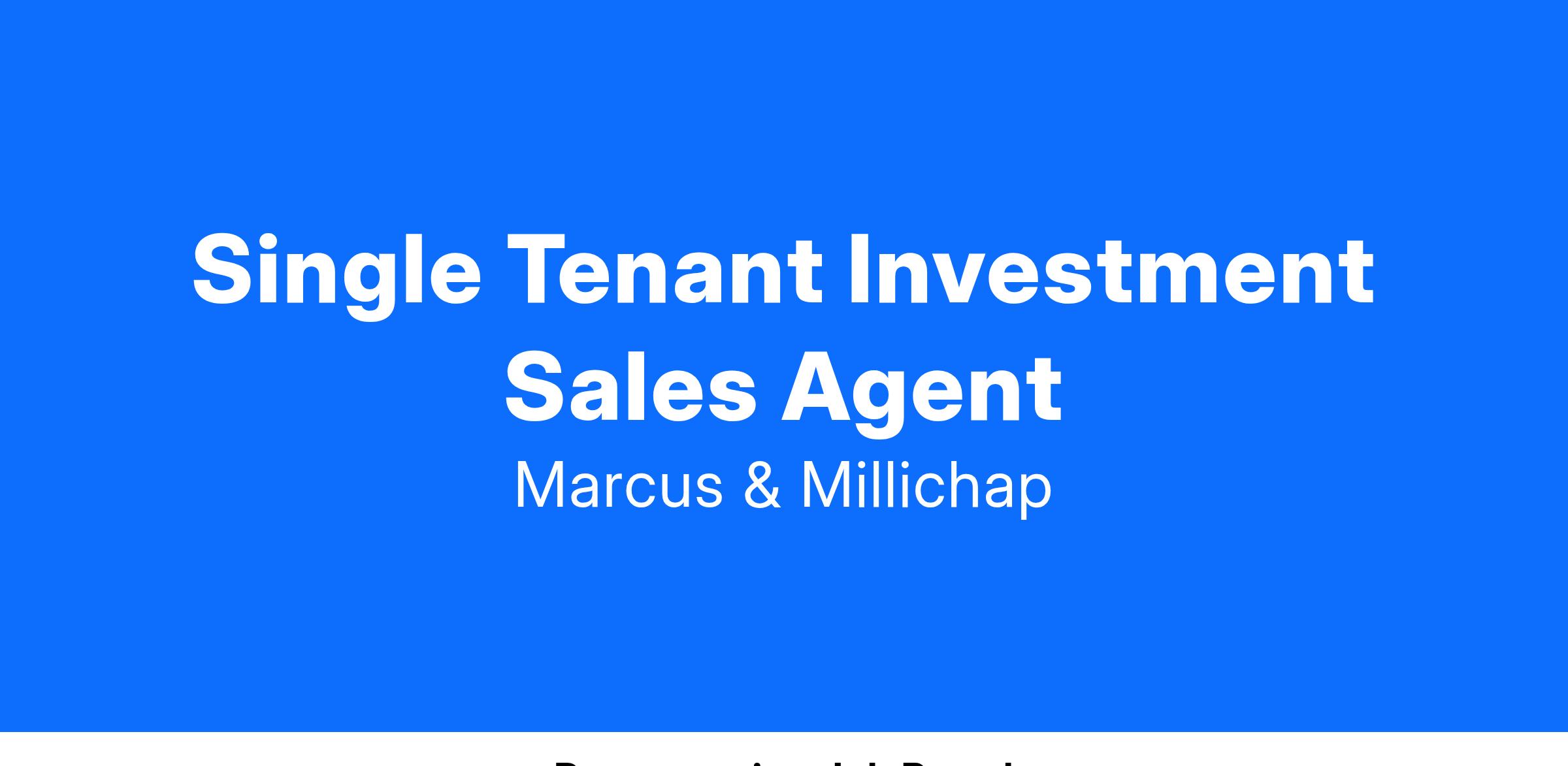 As a leader in the investment brokerage industry, Marcus & Millichap maintains a proven agent development model that offers significant earnings potential and no glass ceiling on your income.