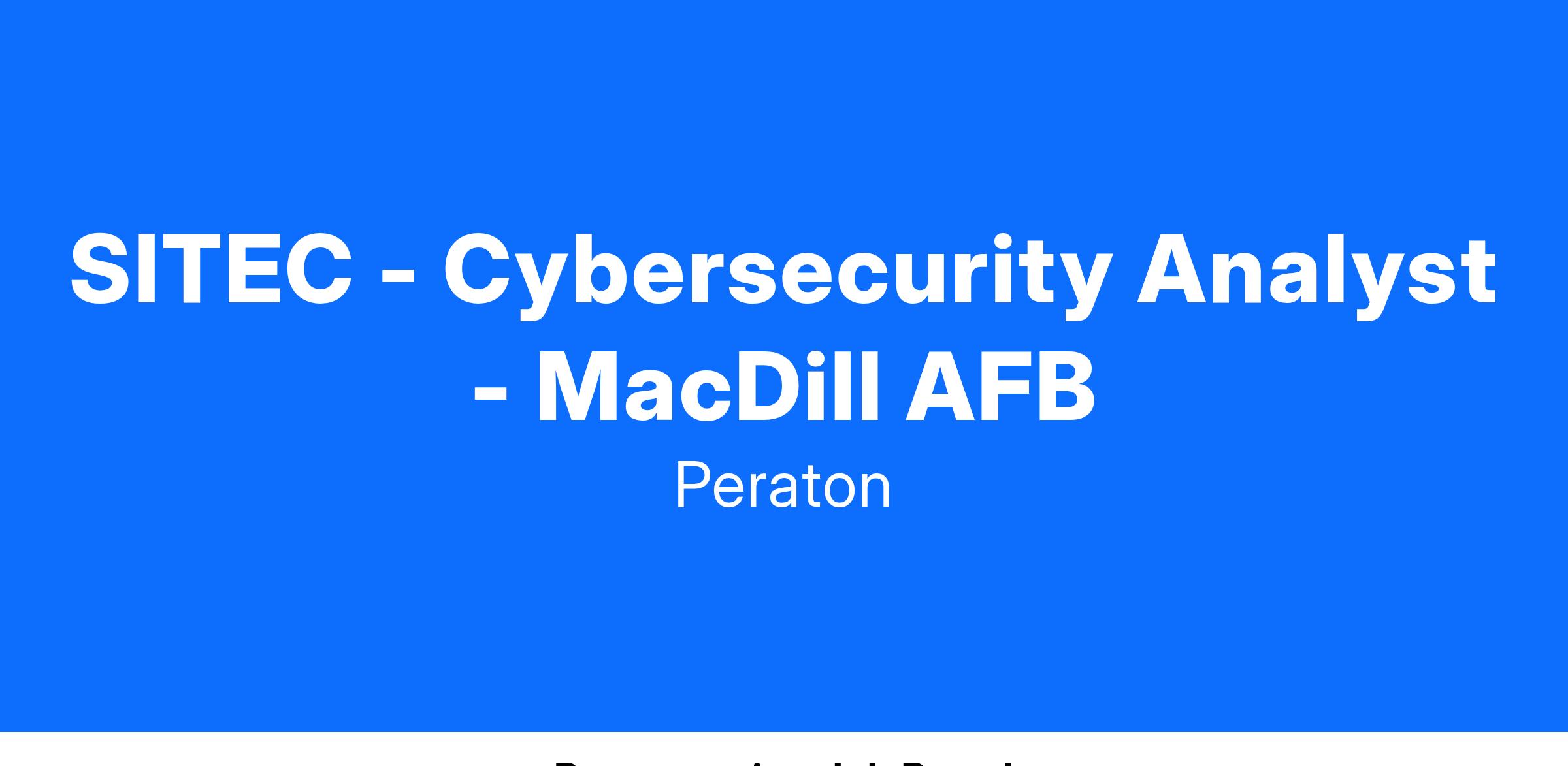 Peraton requires a Cyber Security Analyst (JNY) to support the Special Operation Command Information Technology Enterprise Contract (SITEC) – 3. Positions are located at the SOCOM Headquarters at MacDill, AFB FL, and at the TSOC and Component locations in the United States and abroad.