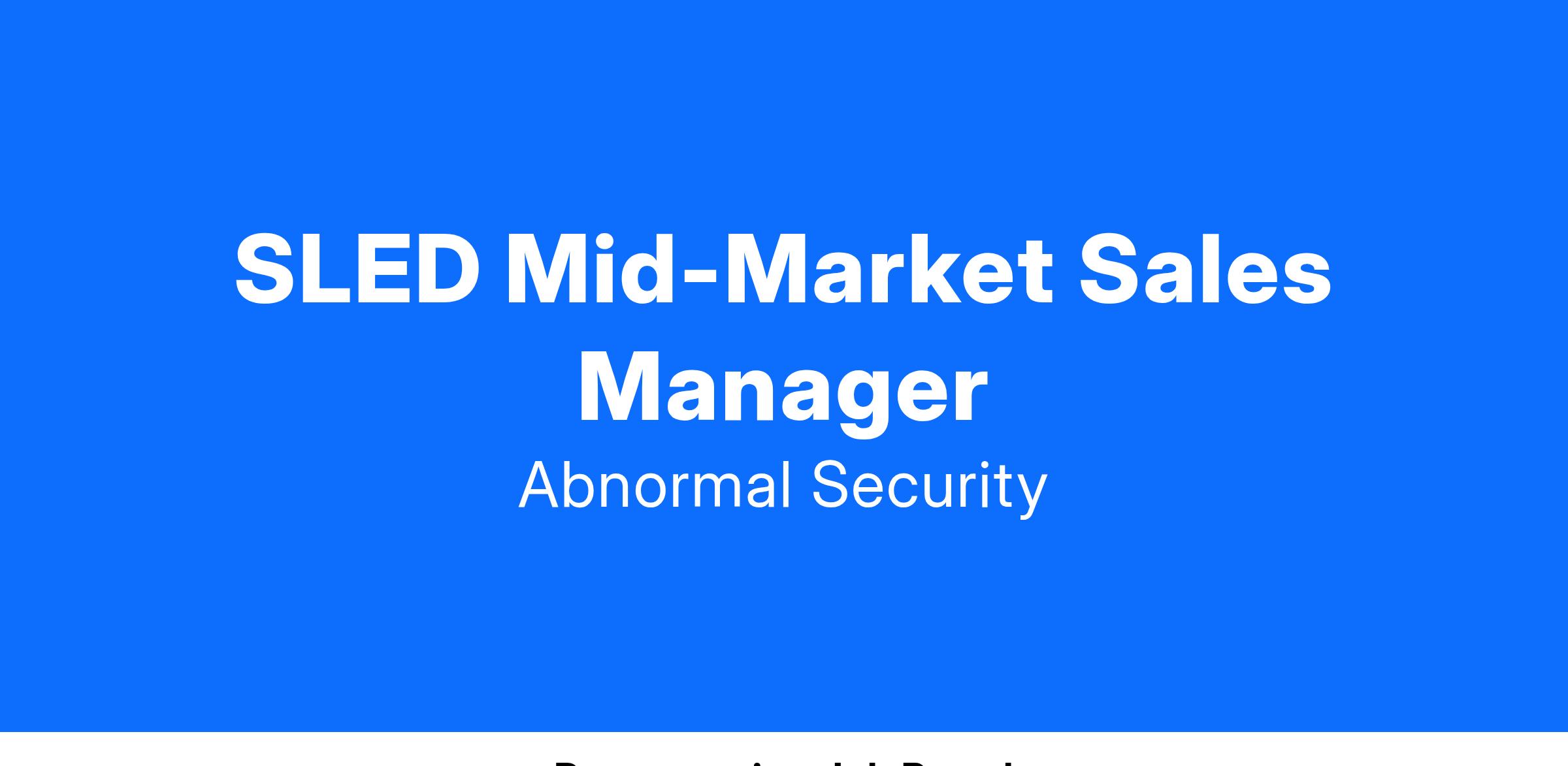 For the Mid Market Sales Manager role at Abnormal Security this person will need to be passionate about the extraordinary value Abnormal is providing to our customers and conduct themselves with exceptional professionalism, honesty, and integrity.They will direct and oversee Abnormal Securityβs sales policies, objectives & initiatives. They will set short and long-term strategies and evaluate effectiveness of current sales programs. Ultimately helping drive revenue and customer retention for Abnormal Security.