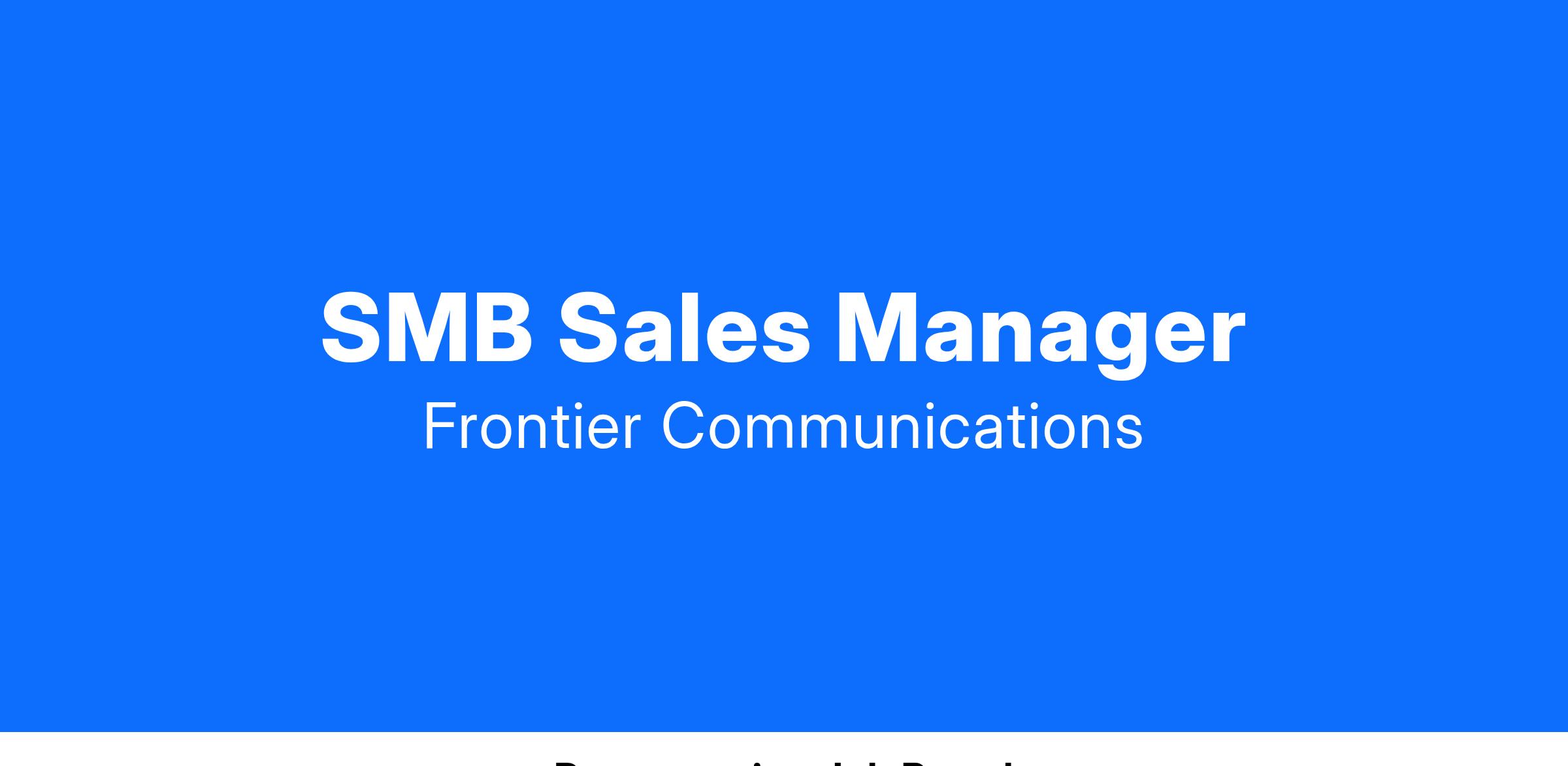 - Provide ongoing coaching to help each SMB Sales Executive meet or exceed sales goals and position them for advancement within Frontier.