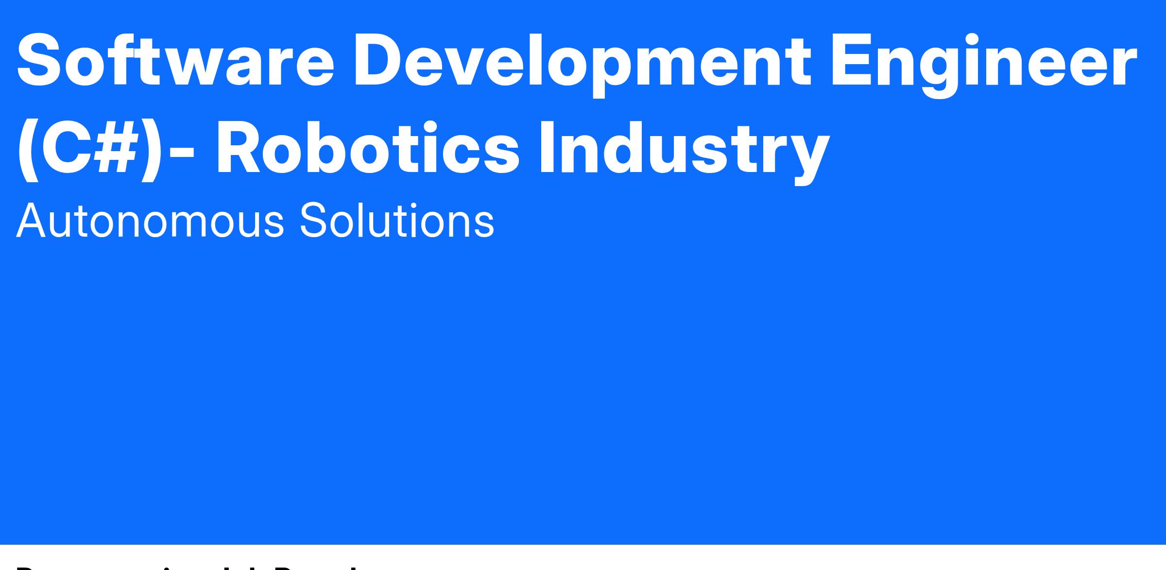 Join the exciting world of robotics and grow with us in an environment where you'll be challenged professionally every day, and your impact will be known globally.