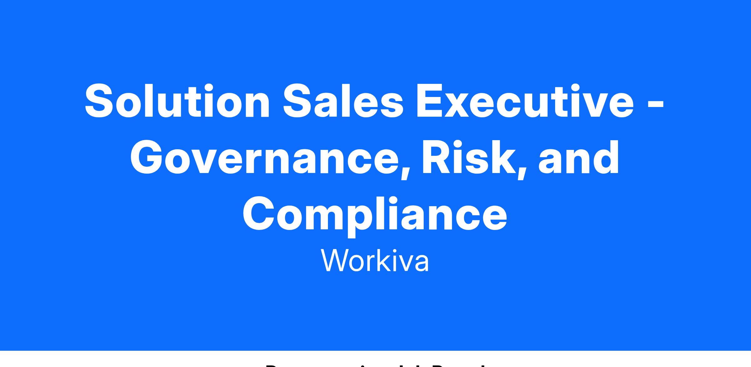 This solution sales role will be focused on Workiva’s Governance, Risk, and Compliance suite of solutions (GRC) for the Corporate Commercial team.