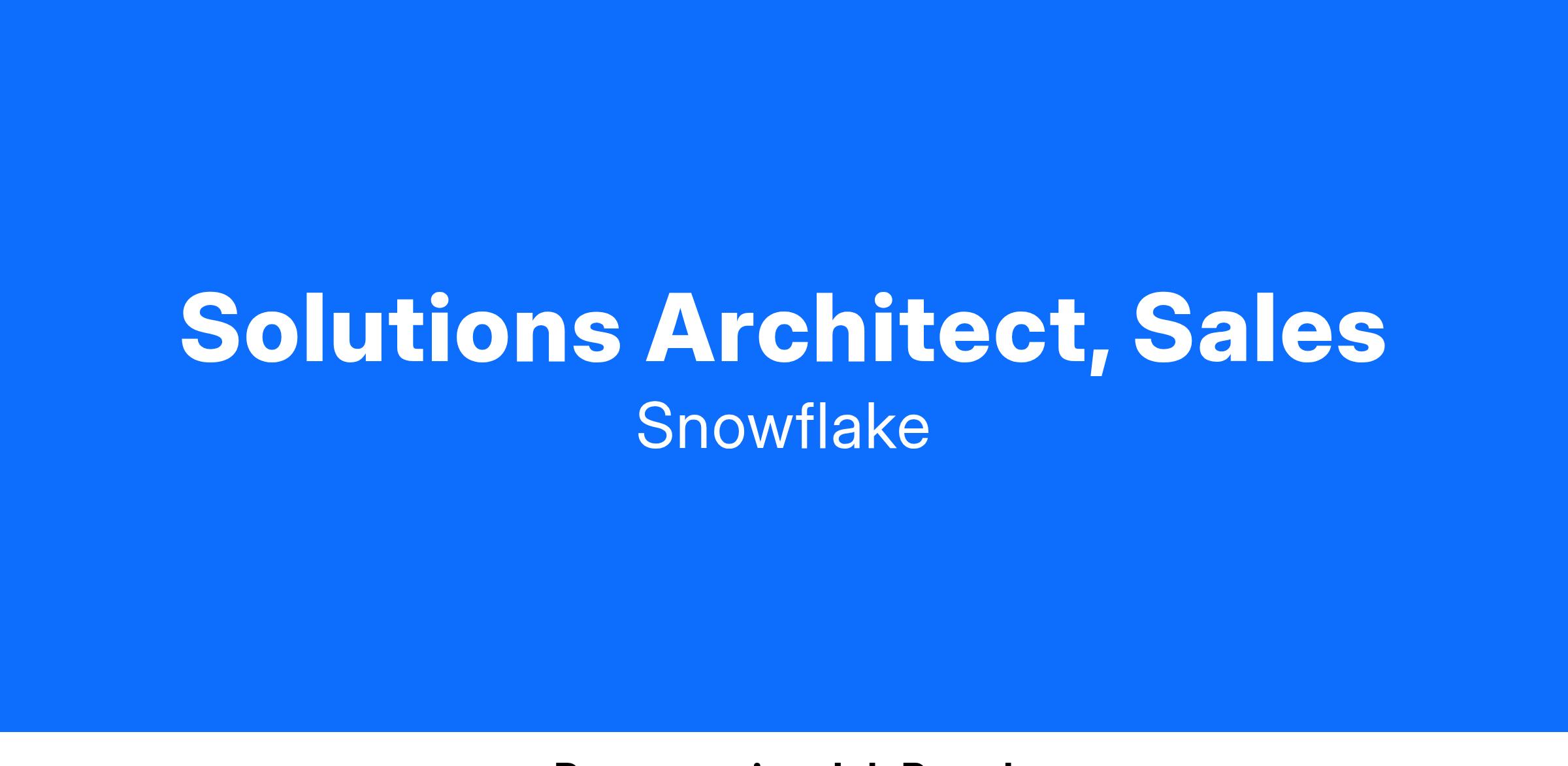 AS A SALES SOLUTIONS ARCHITECT, AT SNOWFLAKE, YOU WILL :